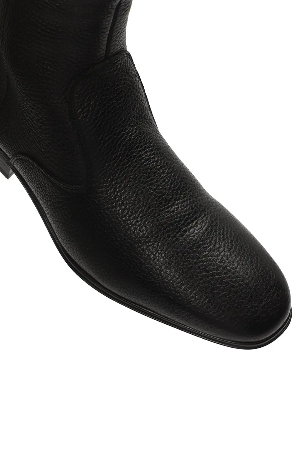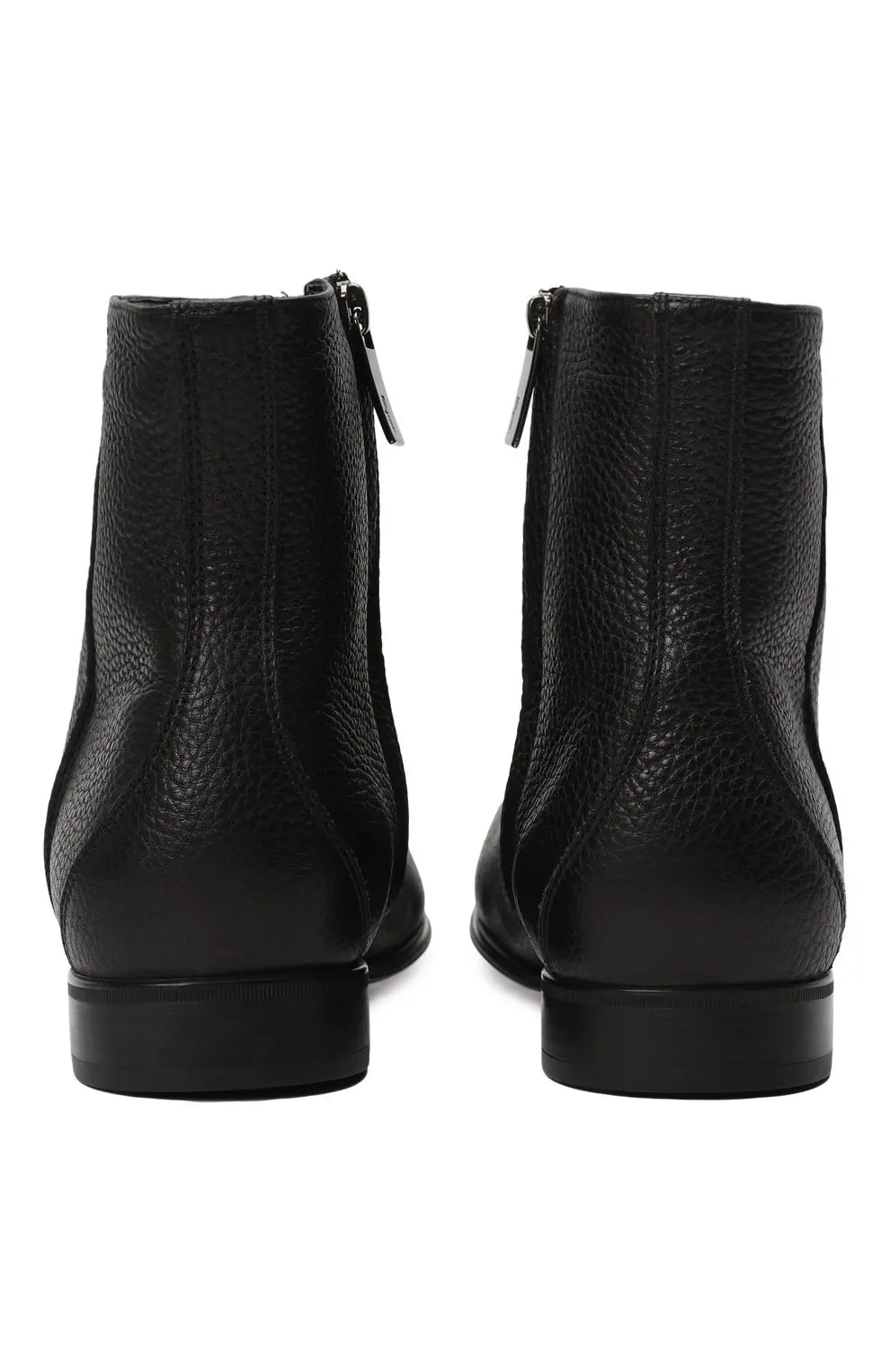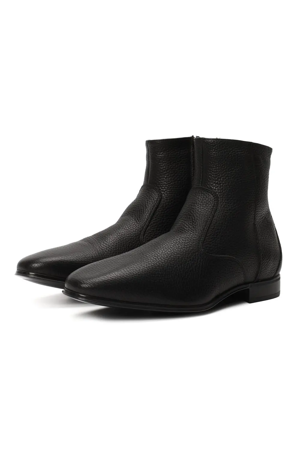 Ботинки Adelmo Salvatore Ferragamo выполнены из мягкой зернистой чёрной кожи и отличаются минималистичным дизайном с акцентом на качество материала. Аккуратный силуэт с зауженным носком и невысоким каблуком подчёркивает элегантность модели, сохраняя при этом практичность и комфорт. Универсальный вариант, который легко дополнит как классические, так и повседневные образы.