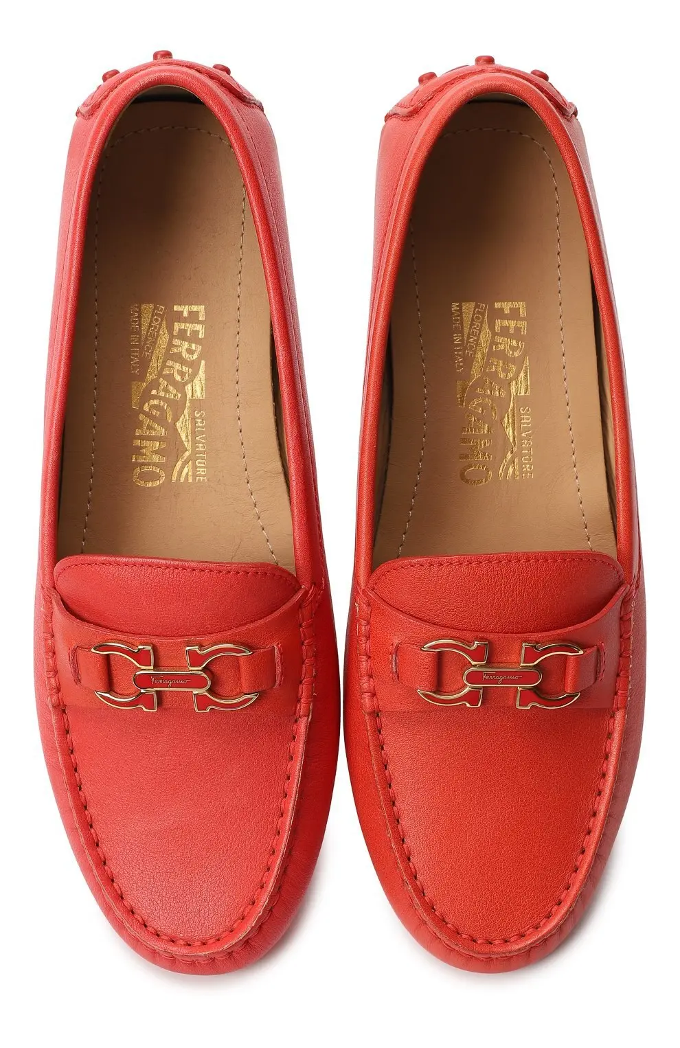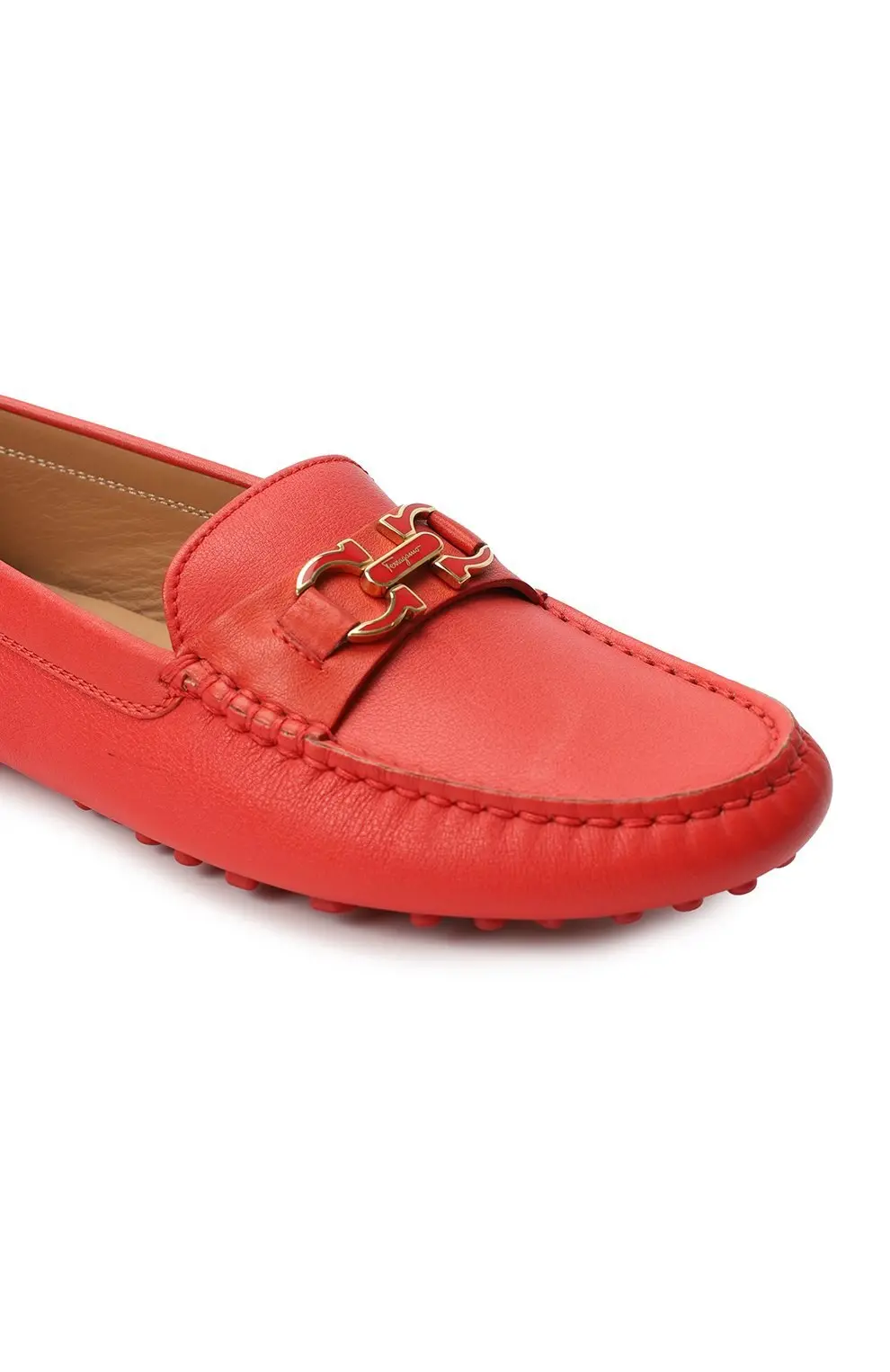 Мокасины Soft Salvatore Ferragamo выполнены из мягкой телячьей кожи насыщенного кораллового оттенка. Лёгкая модель с анатомичной колодкой и фирменной металлической пряжкой Gancini на союзке сочетает комфорт и элегантность. Подошва с резиновыми вставками обеспечивает гибкость и устойчивость, делая обувь идеальной для повседневного ношения и путешествий. Эти мокасины добавят яркий акцент любому летнему образу.