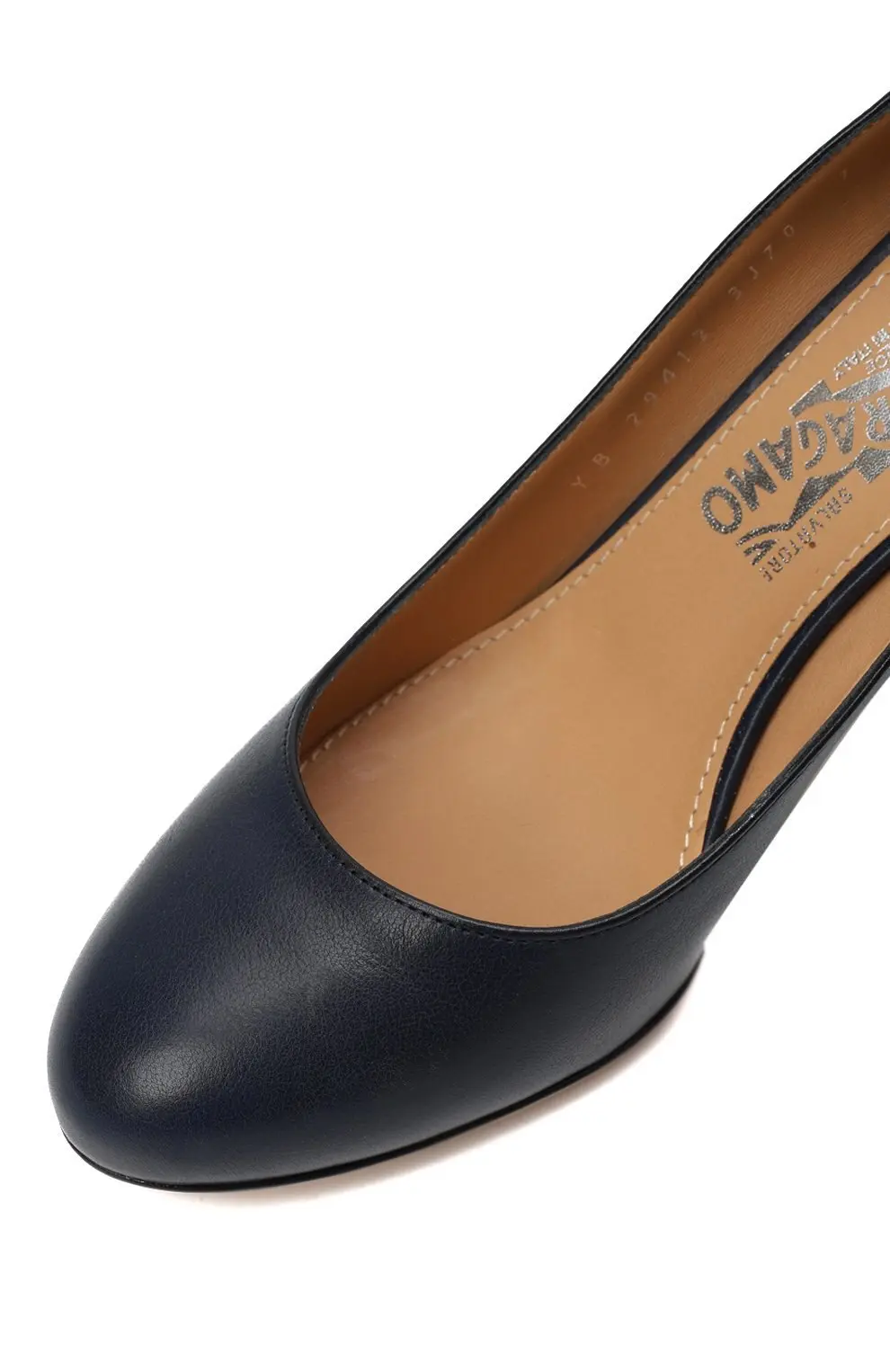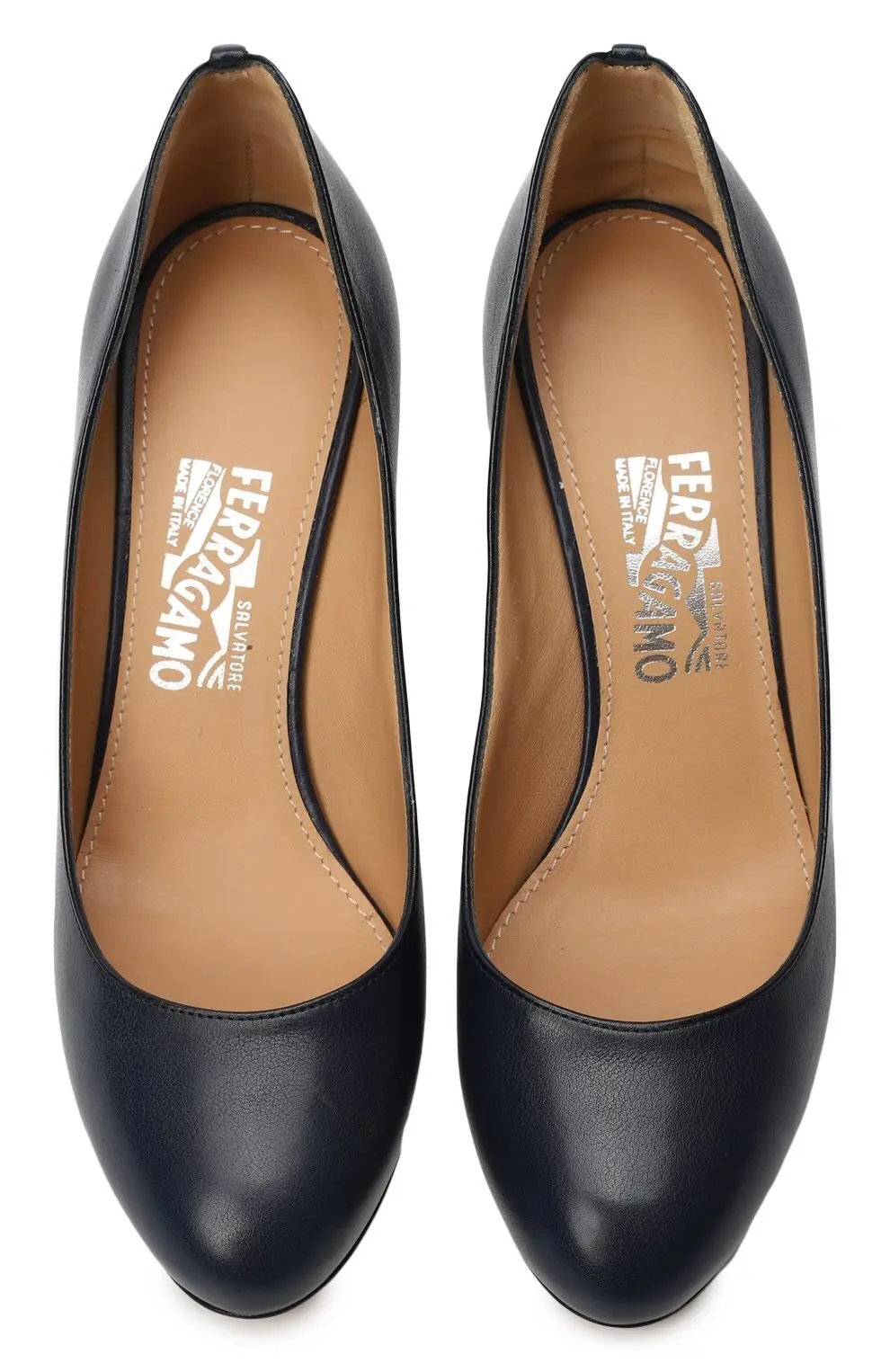 Туфли Salvatore Ferragamo выполнены из мягкой гладкой кожи премиального качества, отличаются лаконичным силуэтом с округлым мыском и изящным каблуком средней высоты, что делает их универсальным выбором как для делового гардероба, так и для вечерних выходов, подчеркивая элегантность и безупречное итальянское качество.