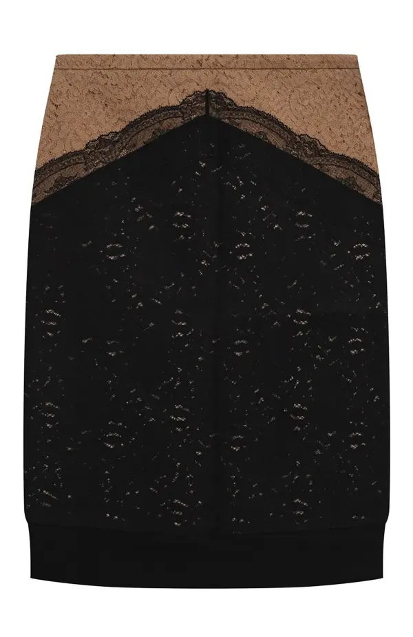 Юбка миди из хлопка оформлена контрастной двухцветной кружевной отделкой с графичным V-образным переходом. Полупрозрачный верхний слой добавляет образу женственность и легкий эффект многослойности. Модель с лаконичным кроем легко сочетать как с базовыми топами, так и с нарядными блузами.