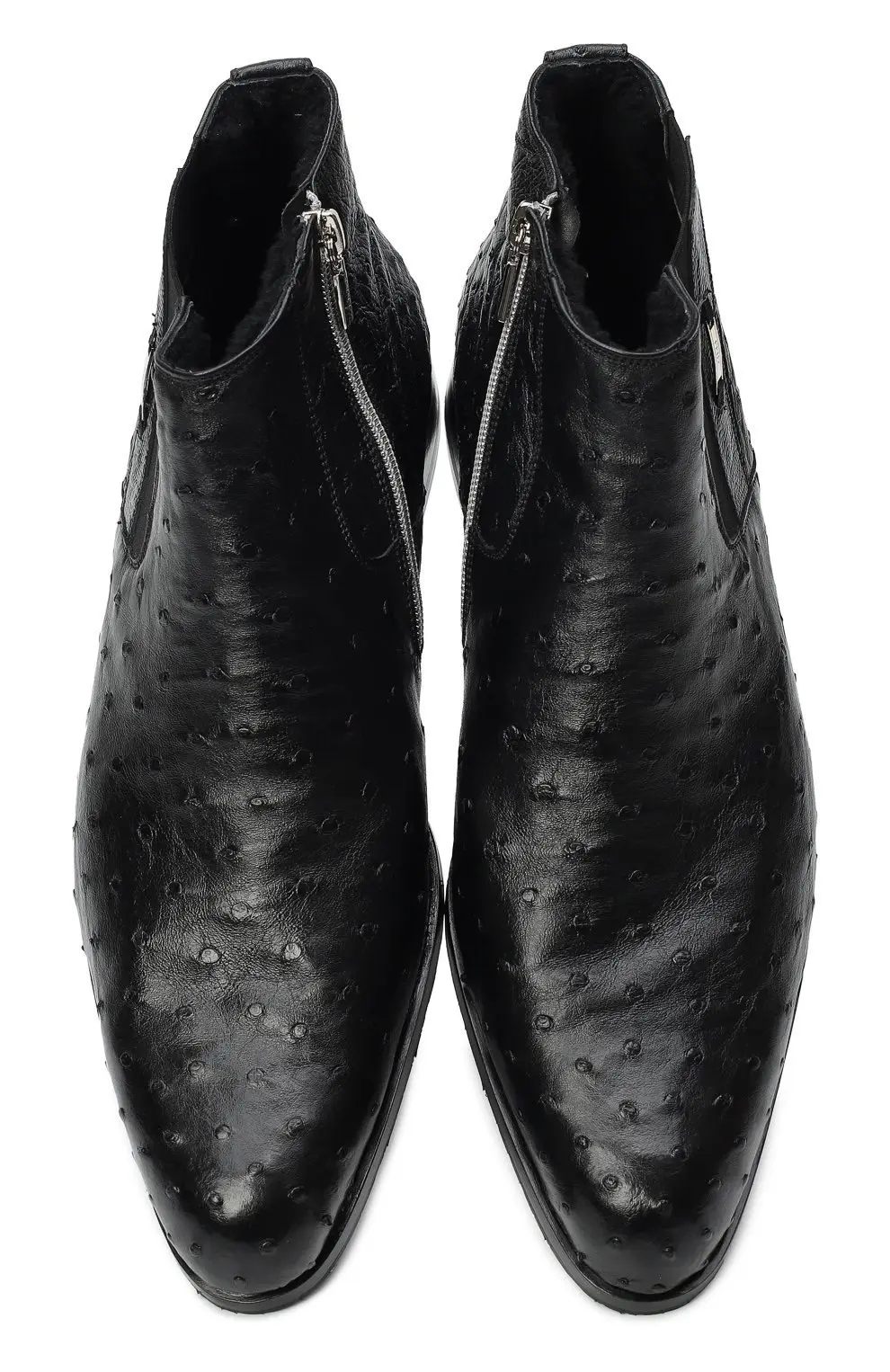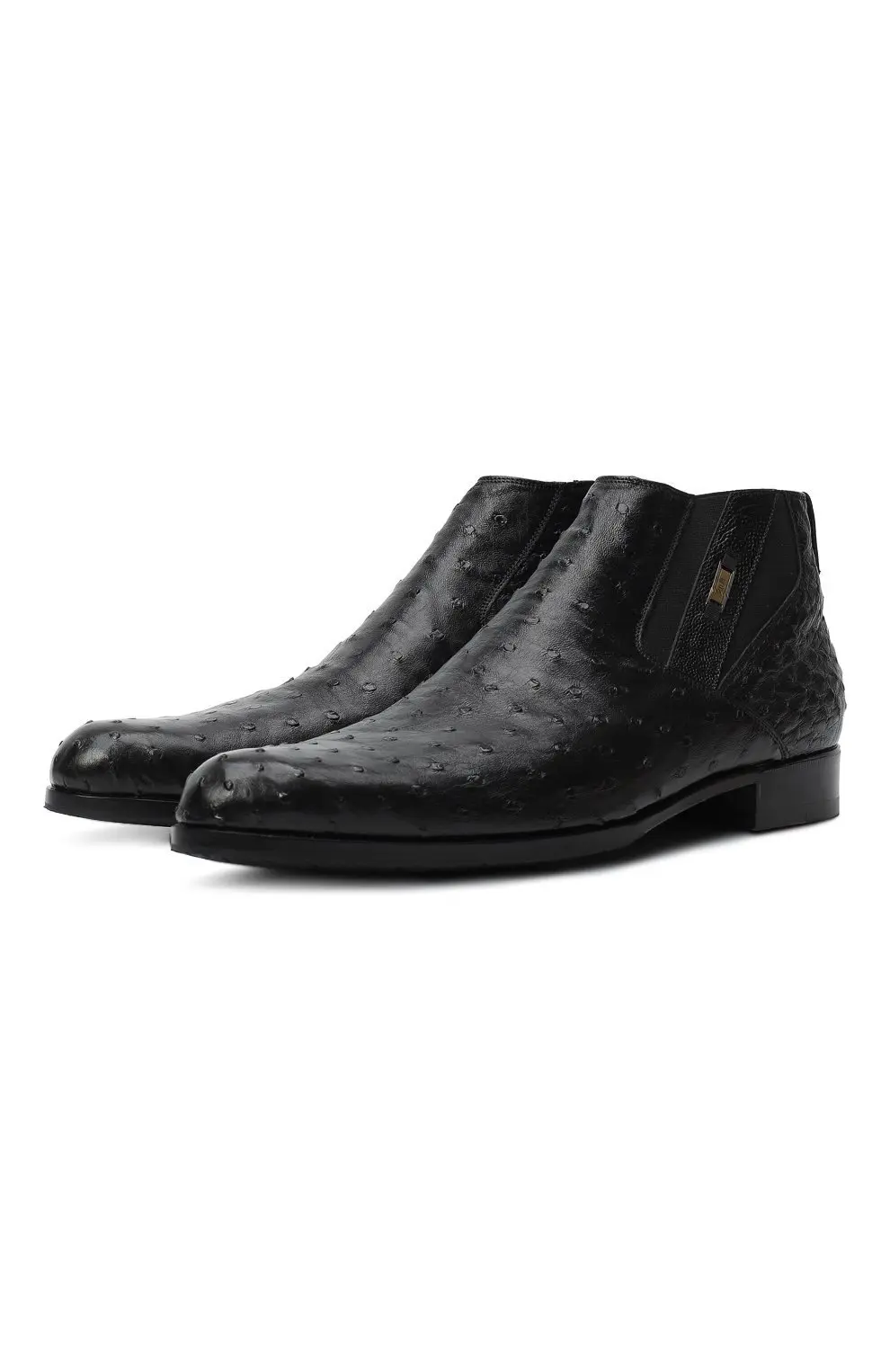 Ботинки Zilli выполнены из редкой страусиной кожи. Элегантная модель с эластичными вставками сочетает роскошь материалов и безупречное мастерство исполнения.