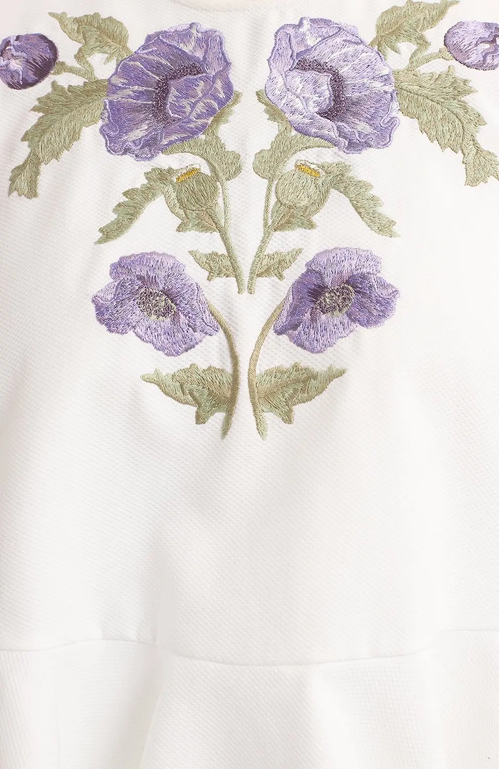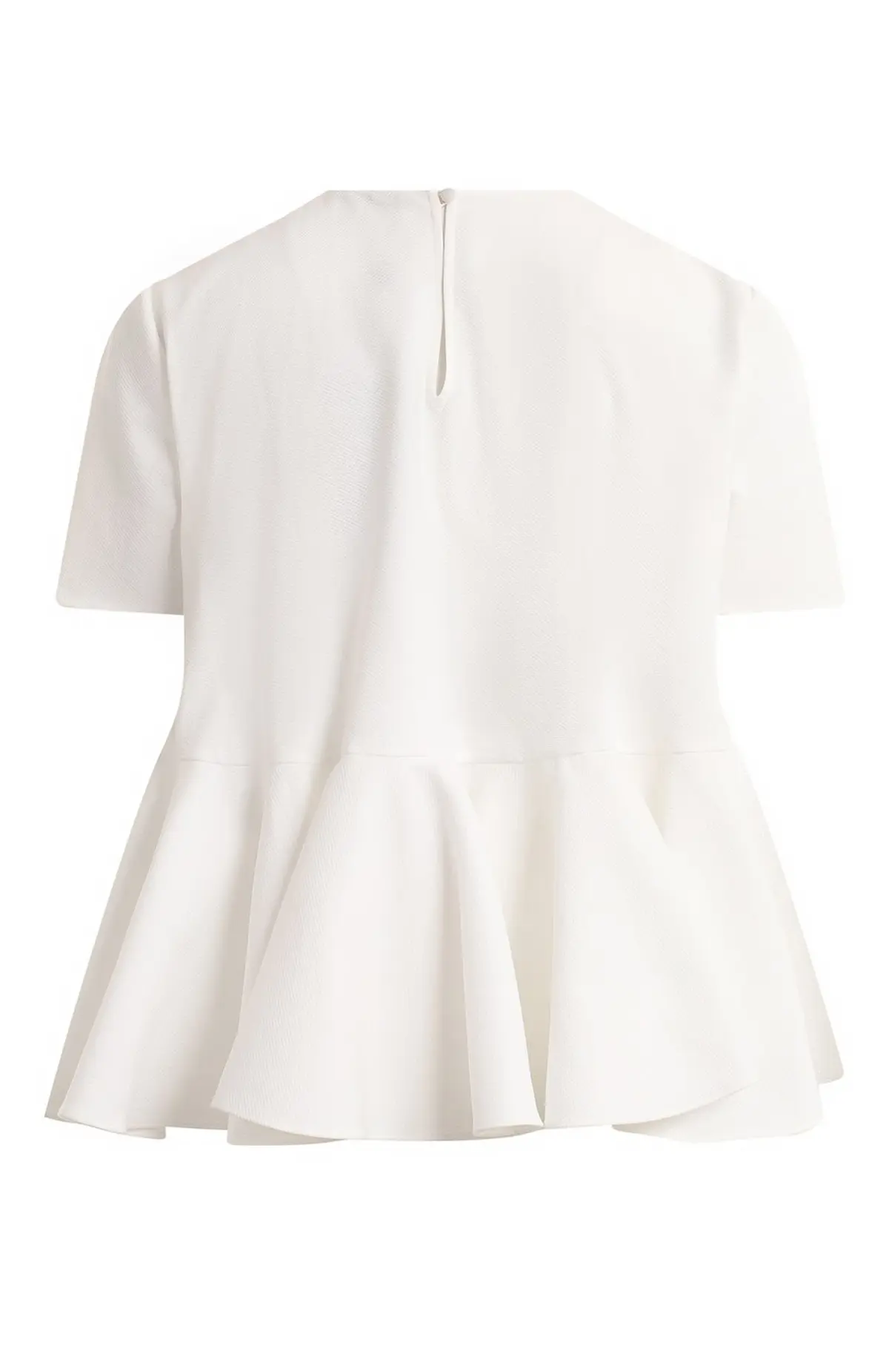 Блузка выполнена из гладкого хлопка белого оттенка. Приталенный крой и чёткие линии создают выразительный силуэт с акцентом на безупречную посадку. Дизайн подчёркивает утончённую эстетику и универсальность модели.