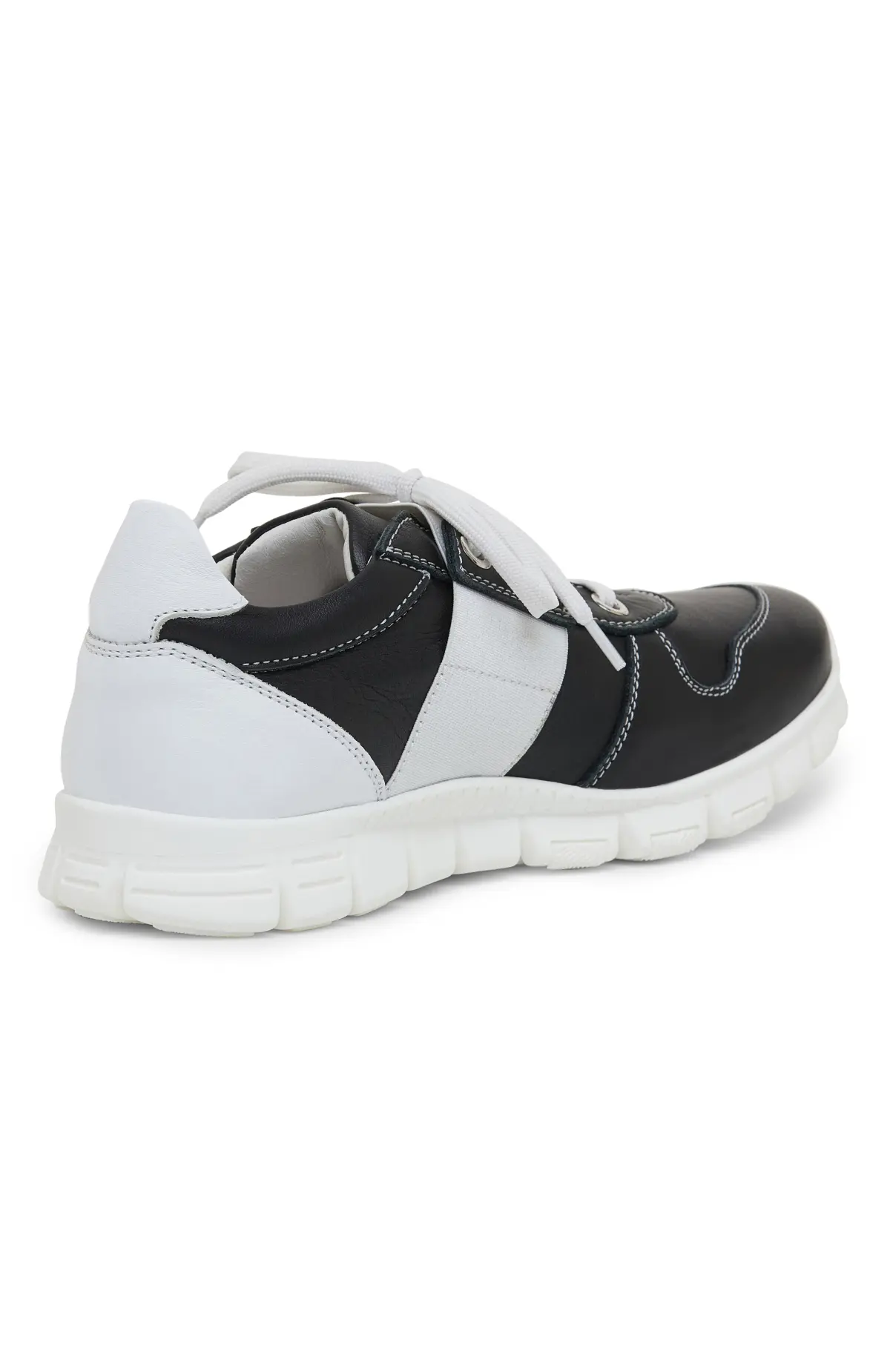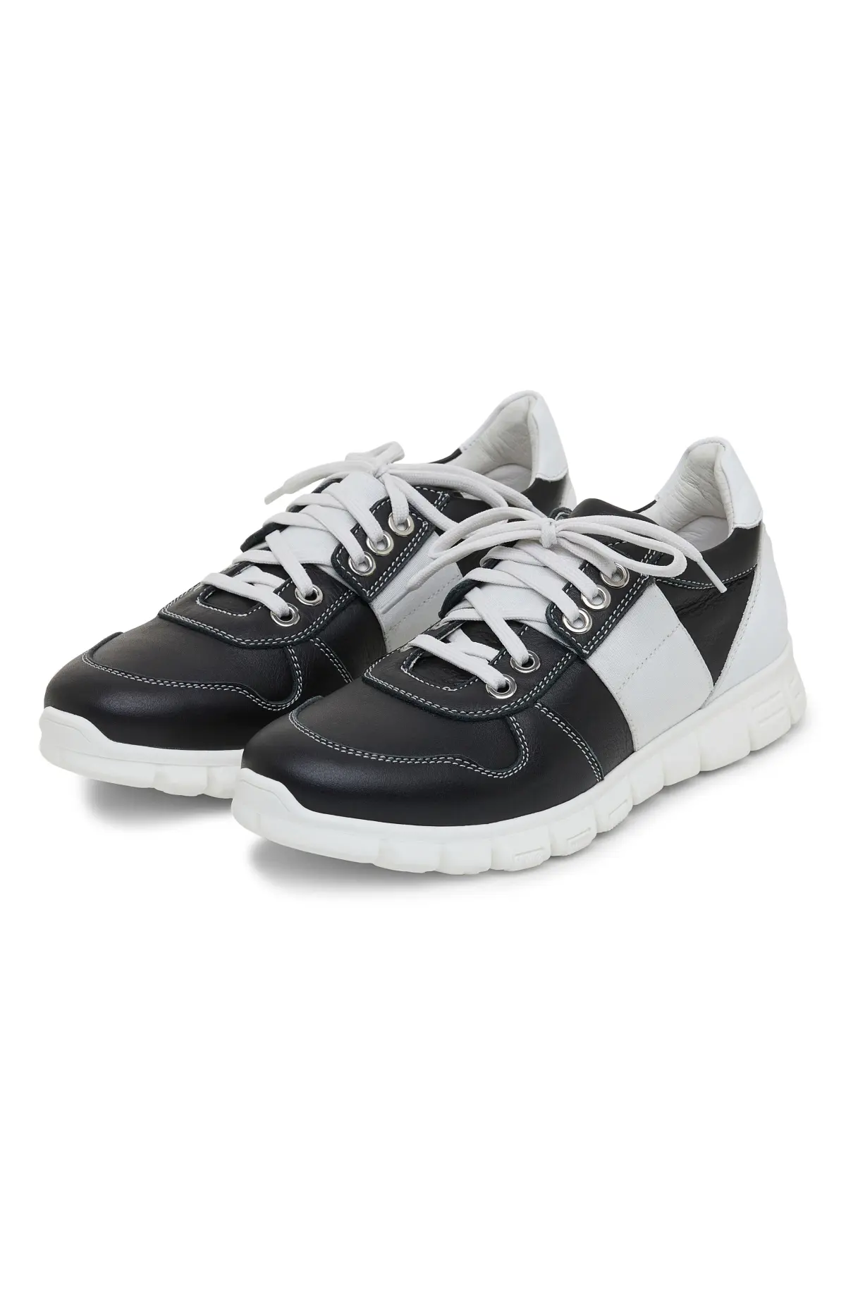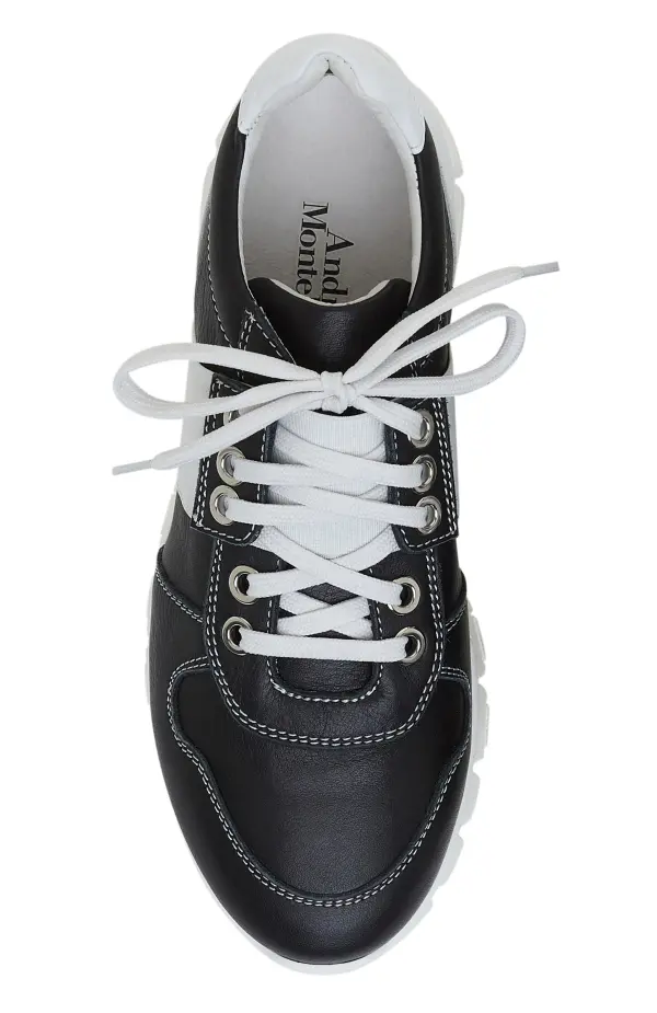 Кроссовки выполнены из гладкой кожи с контрастной прострочкой и металлическими люверсами. Лёгкая сегментированная подошва смягчает шаг и обеспечивает упругую амортизацию. Анатомичная колодка и мягкая кожаная подкладка обеспечивают комфортное прилегание в течение дня.