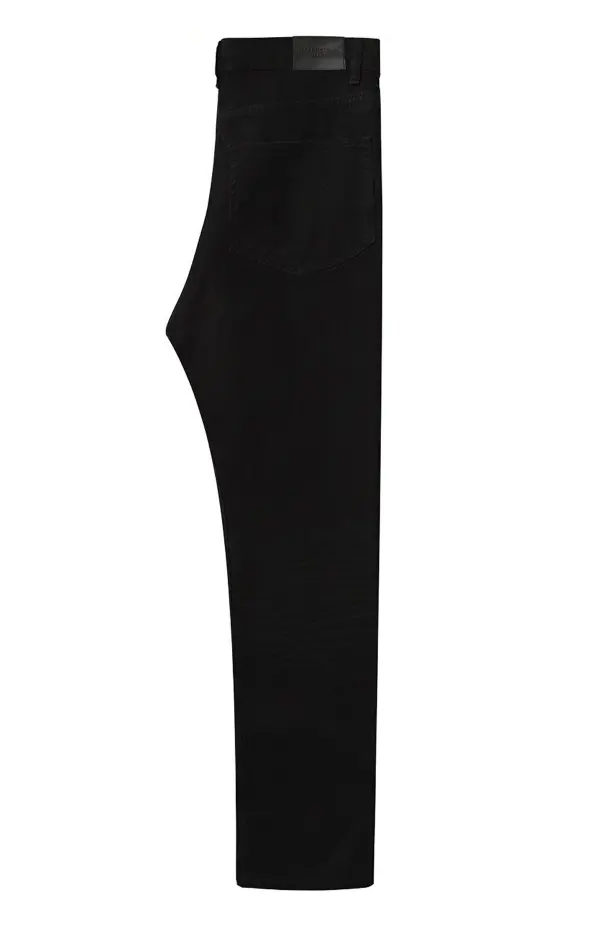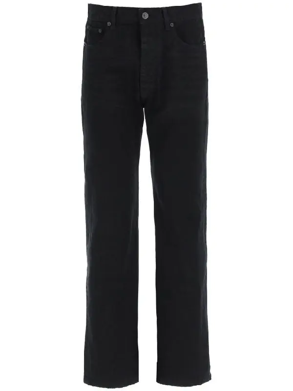 Джинсы прямого кроя выполнены из плотного чёрного денима с лёгким эффектом выцветания, который подчёркивает повседневный характер модели. Классический пятикарманный дизайн и средняя посадка обеспечивают комфортное прилегание и универсальность в сочетаниях. Чистые линии силуэта делают изделие базовой вещью гардероба на каждый день.
