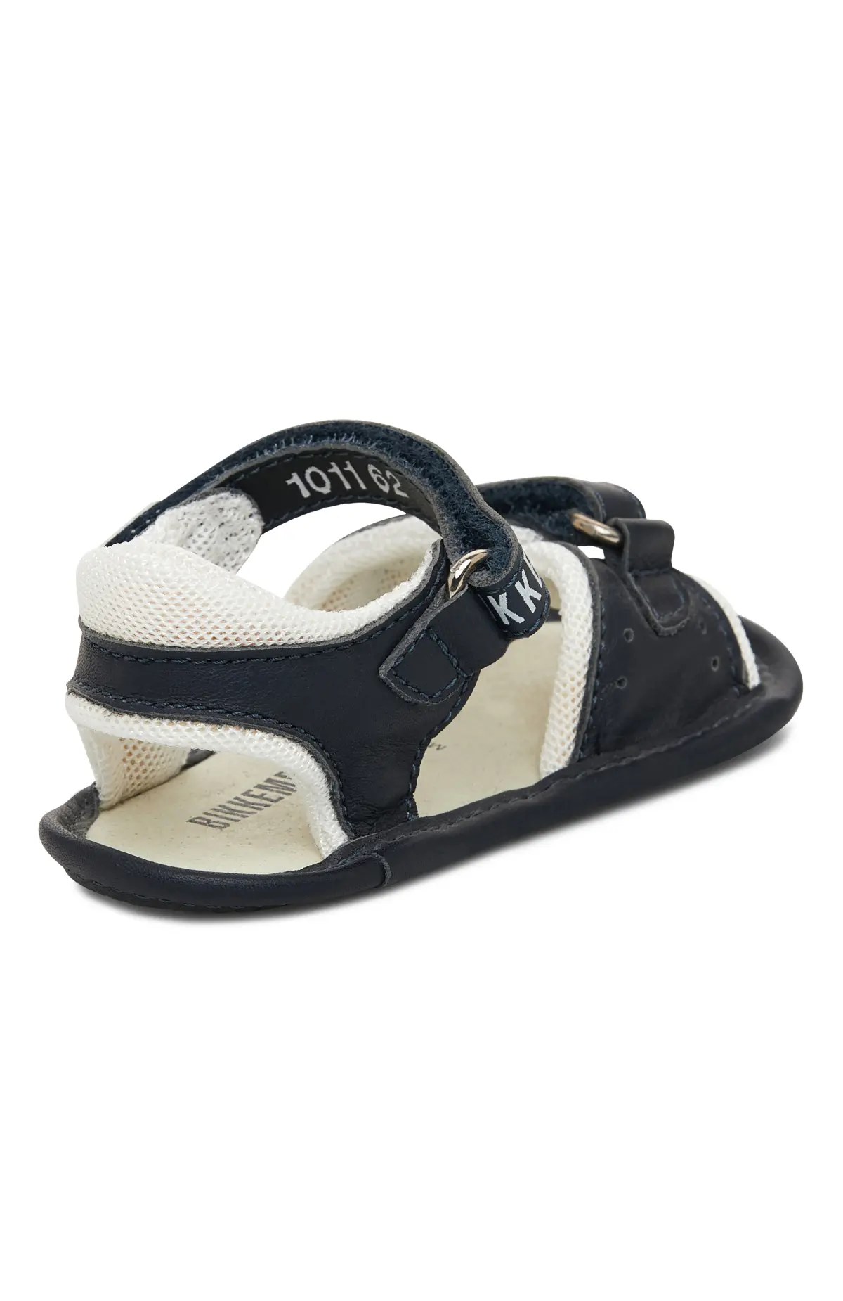 Спортивные сандалии из мягкой кожи с дышащими текстильными вставками обеспечивают комфорт в тёплую погоду. Два удобных ремешка на велкро легко регулируются и фиксируют стопу, лого-тесьма добавляет акцент. Лёгкая гибкая подошва с рельефным протектором отвечает за амортизацию и устойчивость. Идеальны для городских прогулок и активных игр.