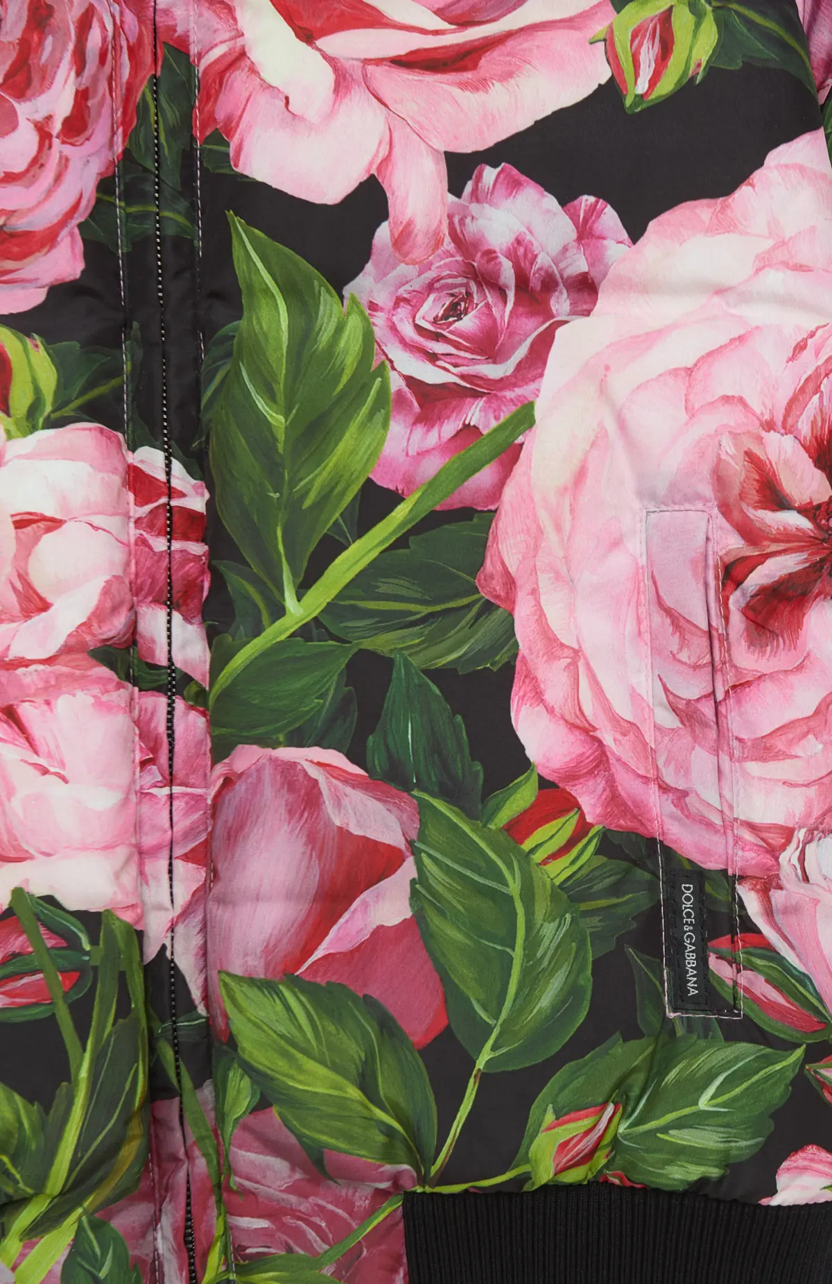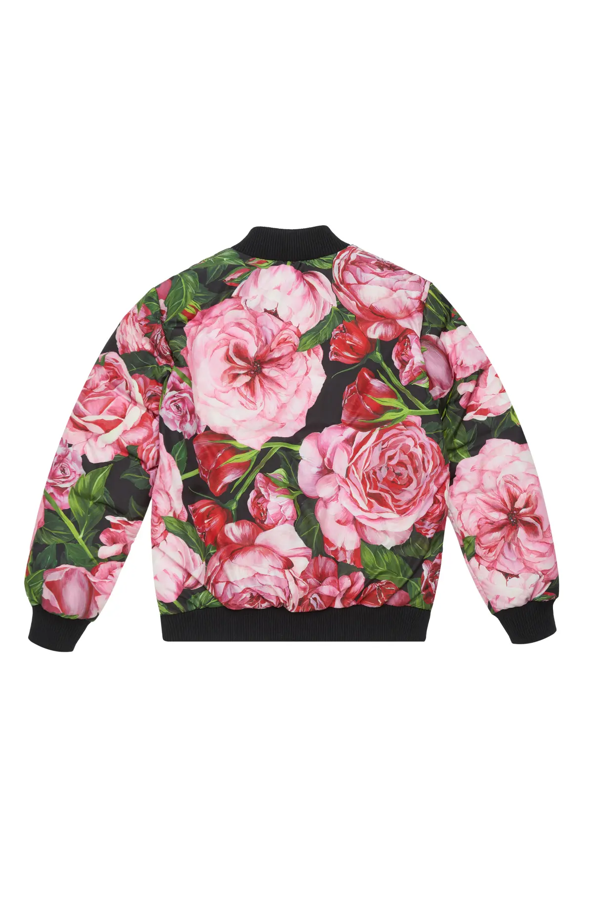 Бомбер выполнен из плотного материала с выразительным цветочным принтом в виде крупных роз на тёмном фоне. Модель с застёжкой на молнию дополнена контрастными трикотажными манжетами, воротником и нижней планкой, обеспечивающими комфортную посадку. Объёмный силуэт и насыщенная палитра придают изделию эффектный и запоминающийся характер.