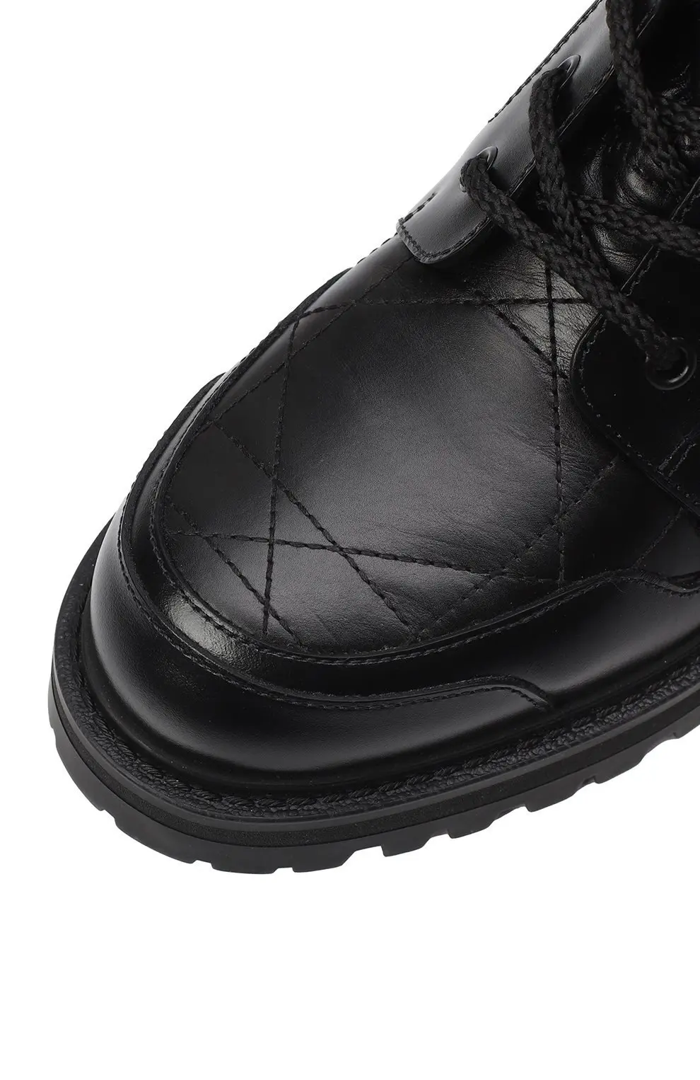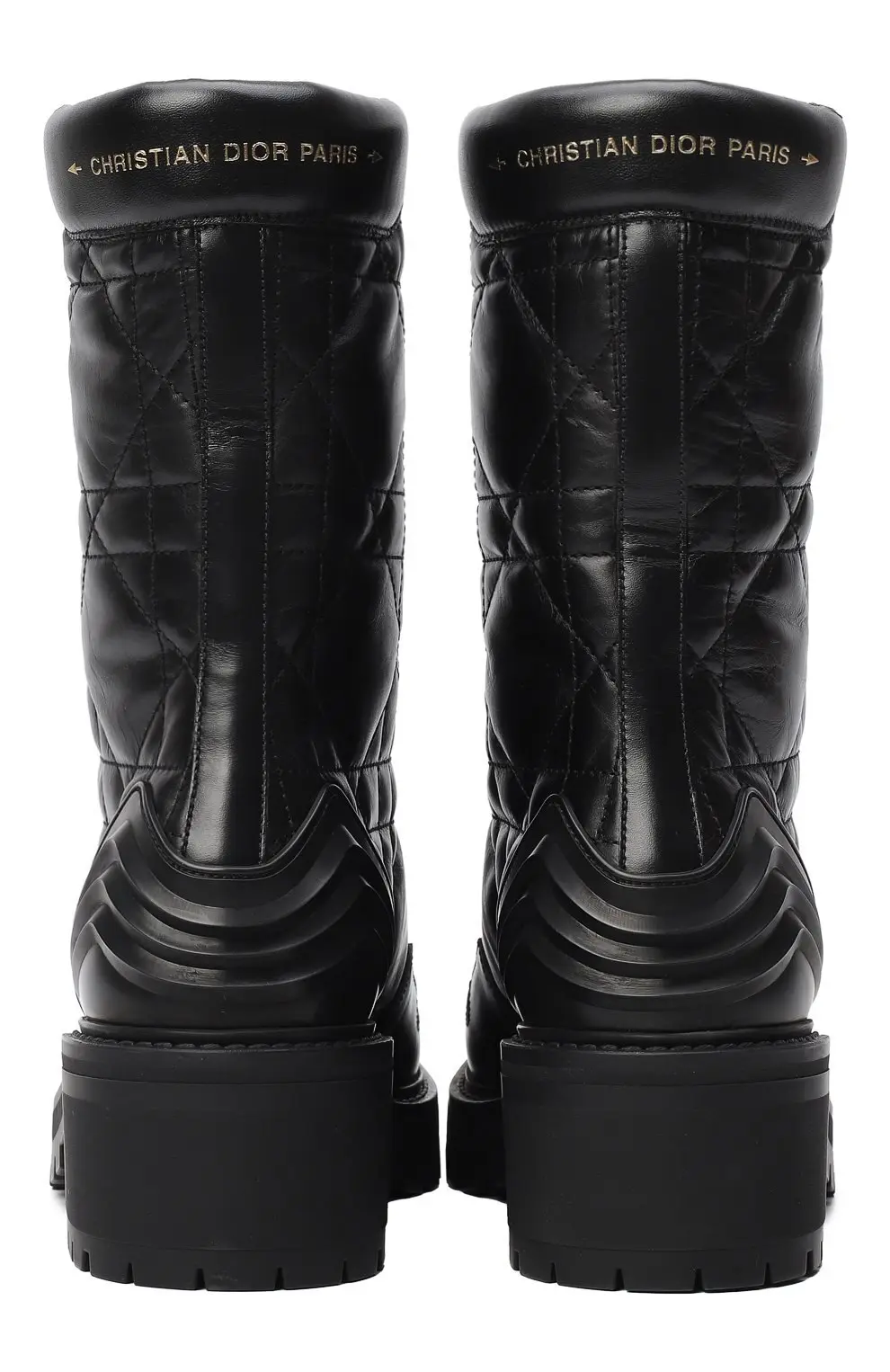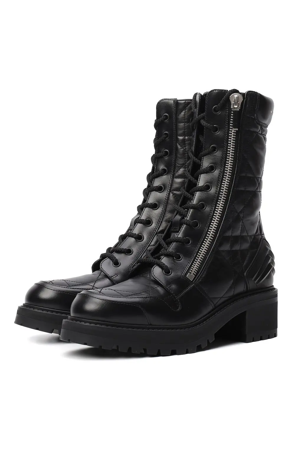 Ботинки D-Leader от Dior — смелое воплощение современного стиля и функциональности. Модель выполнена из мягкой телячьей кожи с культовой стёжкой cannage, подчёркивающей ДНК Дома Dior. Высокий силуэт с шнуровкой гармонично сочетается с боковой молнией, обеспечивая удобство надевания и добавляя урбанистичный характер. Рифлёная подошва и широкий устойчивый каблук гарантируют комфорт и практичность в повседневной носке. Эти ботинки становятся универсальным акцентом гардероба, соединяя в себе изысканность французского дизайна и брутальную эстетику.