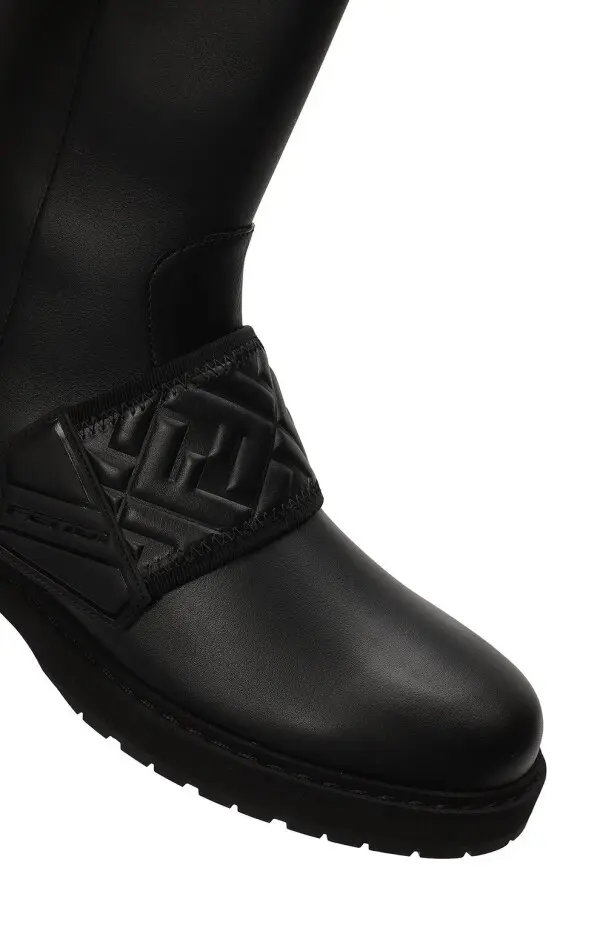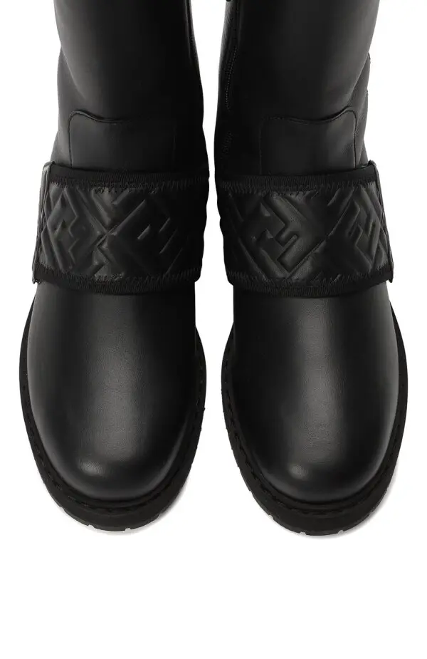 Сапоги FF Biker Fendi выполнены из гладкой кожи и отражают дерзкий дух мотоциклетного стиля. Акцент сделан на широком кожаном ремне с объёмным тиснением в виде фирменного монограмного узора FF, что добавляет модели характерного шарма. Устойчивая подошва с протектором обеспечивает комфорт и надёжность при носке, а лаконичный дизайн делает обувь универсальной для городских образов с ноткой брутальности.