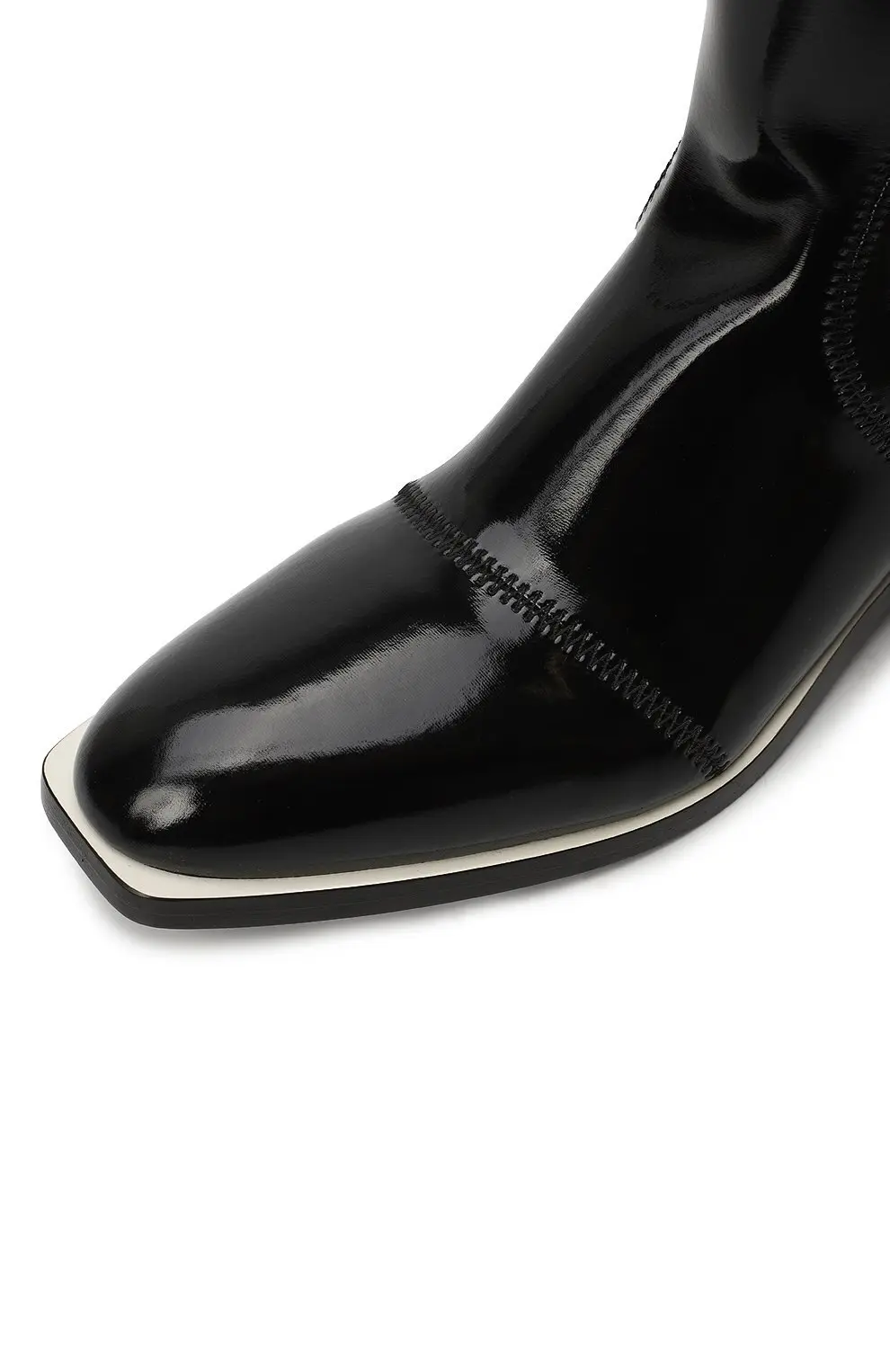 Сапоги FFrame Fendi выполнены из гладкой лакированной кожи, которая придаёт модели блеск и изысканный характер. Минималистичный силуэт с акцентом на декоративные строчки подчёркивает современную эстетику бренда, а удобная молния сзади облегчает надевание. Плоская подошва и мягкая внутренняя отделка обеспечивают комфорт в течение всего дня, делая эти сапоги стильным и практичным выбором для завершения элегантных и повседневных образов.