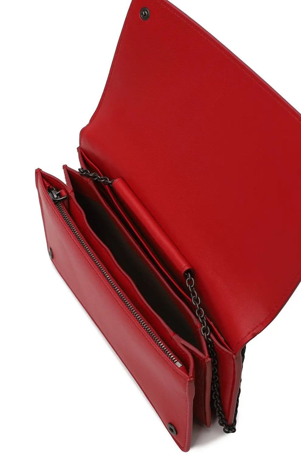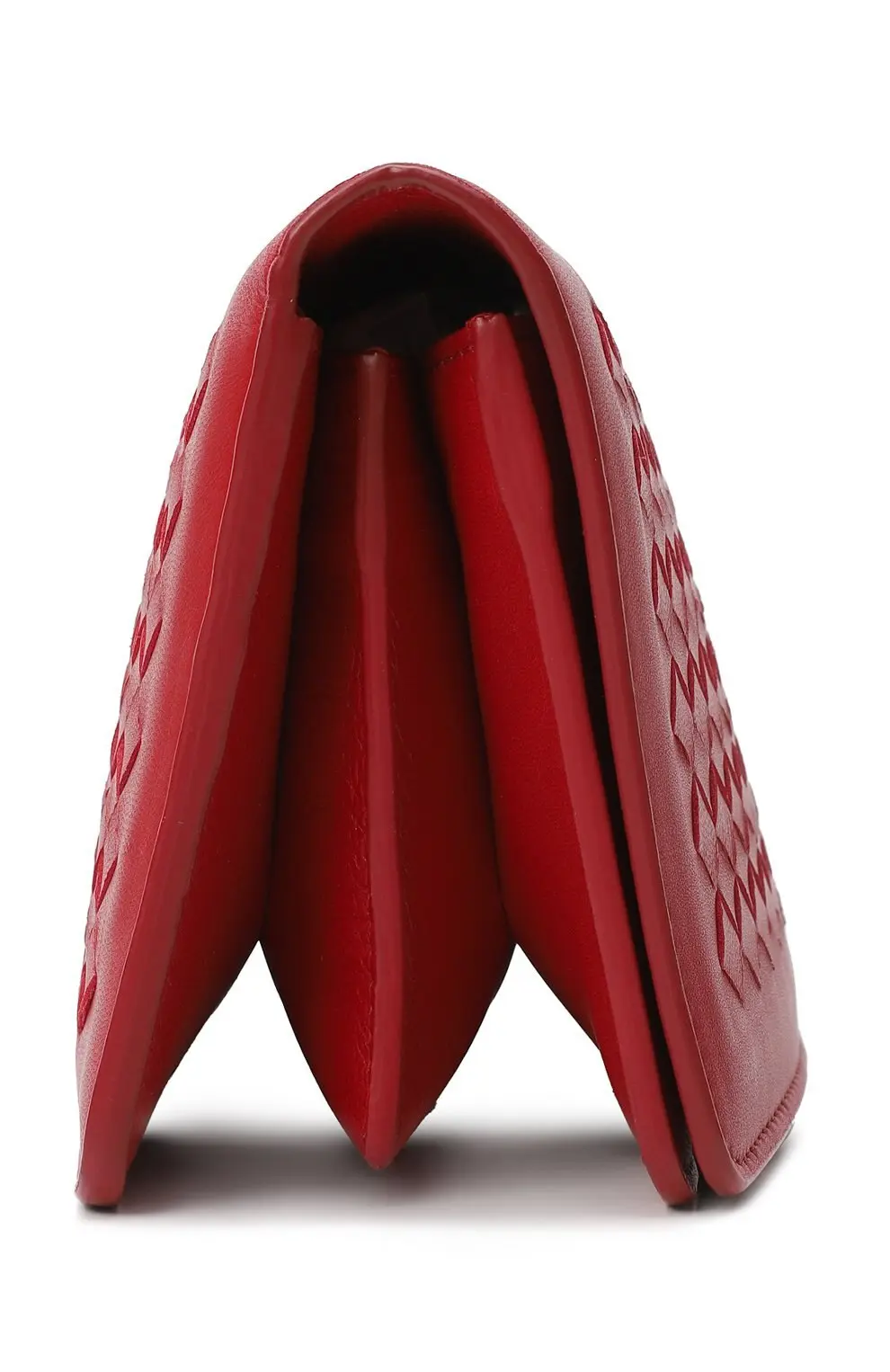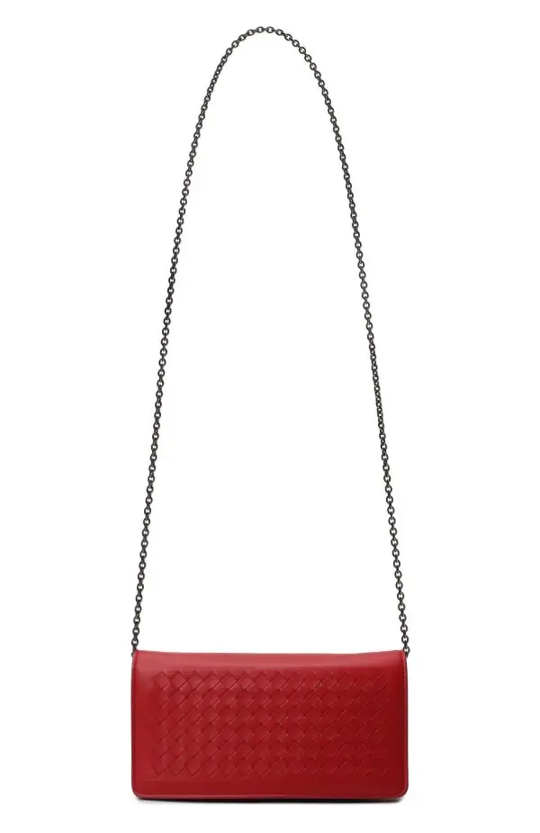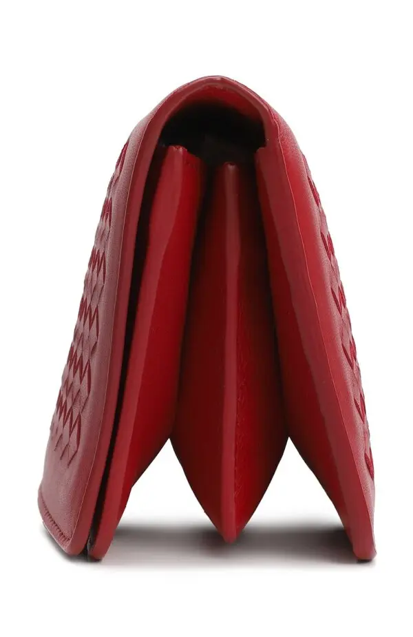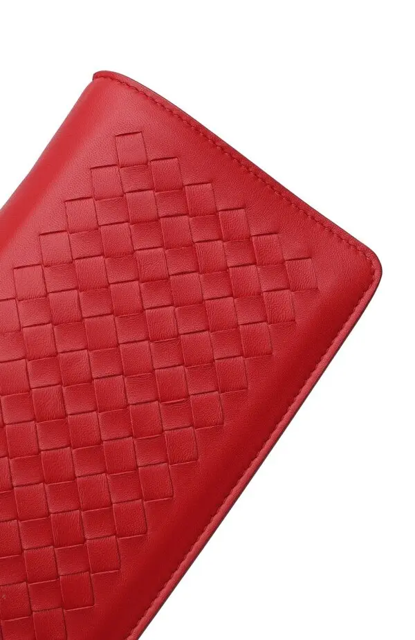 Клатч от Bottega Veneta в насыщенном красном цвете изготовлен из мягкой кожи и украшен культовым плетением intrecciato, подчеркивающим узнаваемый стиль дома. Лаконичный удлинённый формат делает его удобным для хранения купюр и документов, сохраняя при этом изысканную эстетику. Этот аксессуар станет ярким акцентом в образе и отличным выбором для ценителей минимализма с характером.