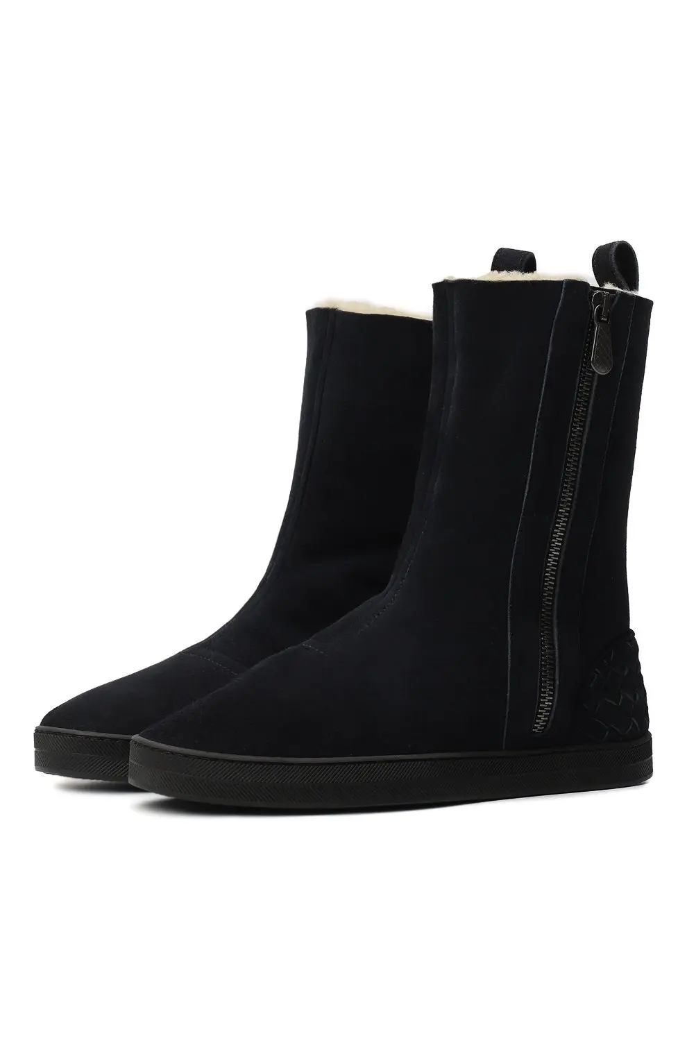 Сапоги Bottega Veneta выполнены из мягкой замши и дополнены теплой подкладкой, обеспечивающей комфорт в холодное время года. Боковая молния облегчает надевание, а задняя часть украшена фирменным плетением intrecciato, подчеркивающим характерный стиль бренда. Модель сочетает лаконичный дизайн и практичность, оставаясь при этом элегантной и современной.