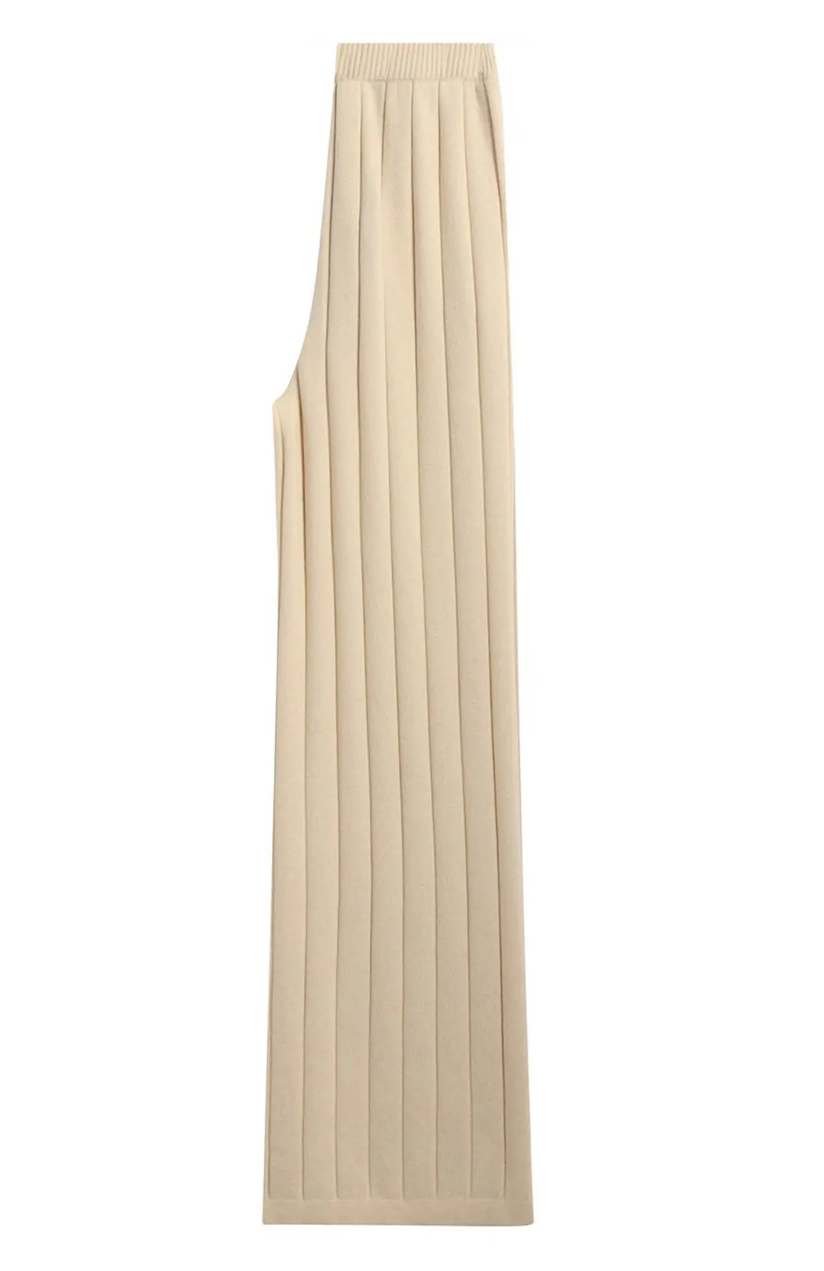 Кашемировые брюки от Loro Piana выполнены в нежном бежевом оттенке и отличаются изысканным дизайном с вертикальной фактурной вязкой, визуально удлиняющей силуэт. Свободный крой и эластичный пояс обеспечивают комфорт и лёгкость в носке, а боковые карманы добавляют практичности. Эти брюки идеально сочетают элегантность и уют, подчеркивая характерный для бренда утончённый стиль и безупречное качество.