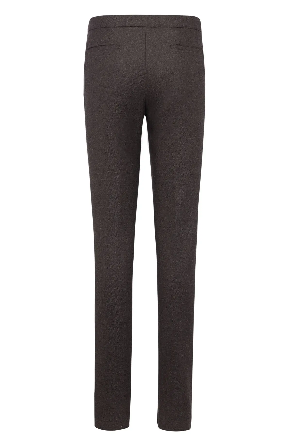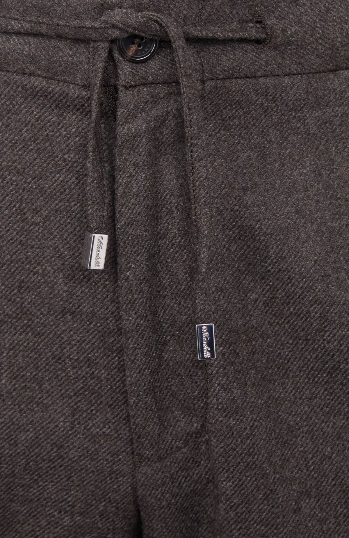 Брюки прямого кроя выполнены из плотной ткани с мягкой, слегка зернистой фактурой, создающей ощущение уюта и комфорта. Модель дополнена эластичным поясом с регулируемыми завязками, обеспечивающими удобную и аккуратную посадку. Лаконичный силуэт подчёркивает сдержанную элегантность и делает изделие универсальным для повседневных образов.
