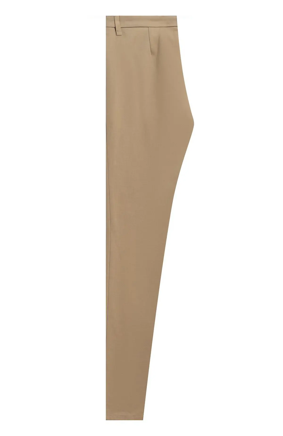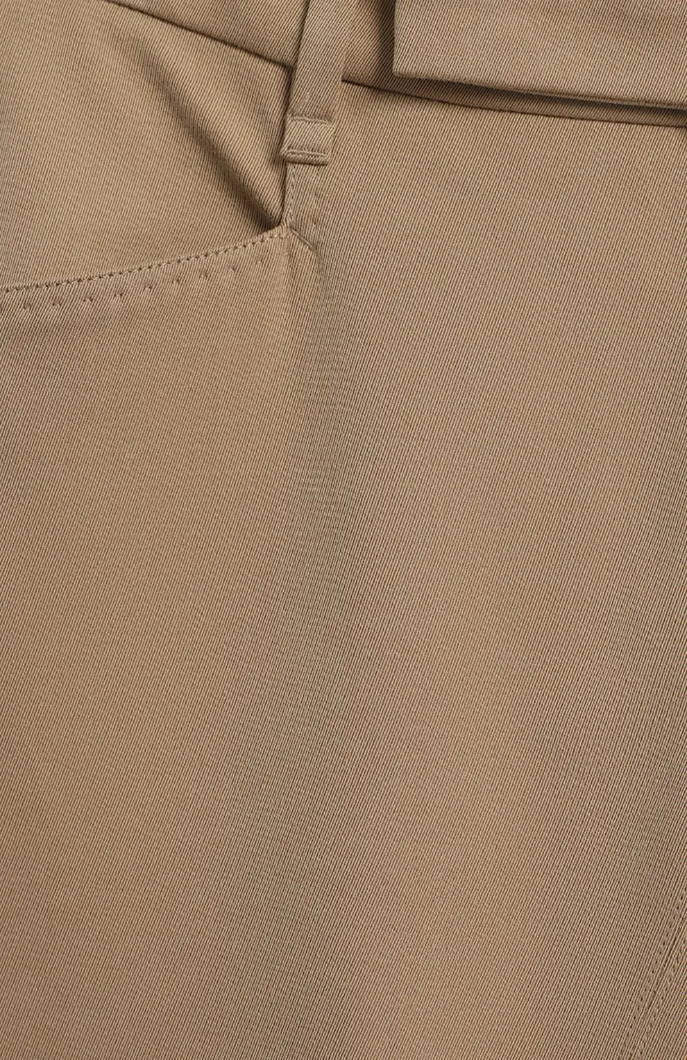 Брюки Loro Piana из гладкого хлопка выполнены в светло-бежевом оттенке. Лаконичный крой со слегка зауженными штанинами подчёркивает утончённость силуэта, а мягкий, дышащий материал обеспечивает комфорт и безупречную посадку. Универсальная модель идеально подходит как для повседневных, так и для элегантных образов, отражая минимализм и изысканную эстетику бренда.