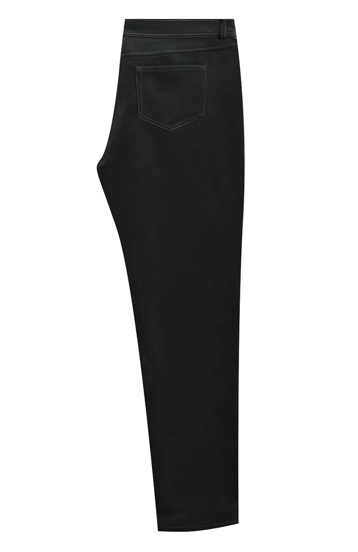 Брюки Loro Piana выполнены из мягкой хлопковой ткани с добавлением эластана, что обеспечивает комфорт и безупречную посадку. Классический прямой крой и глубокий чёрный оттенок подчёркивают универсальность модели. Изделие отличается минималистичным дизайном и характерным итальянским совершенством отделки.