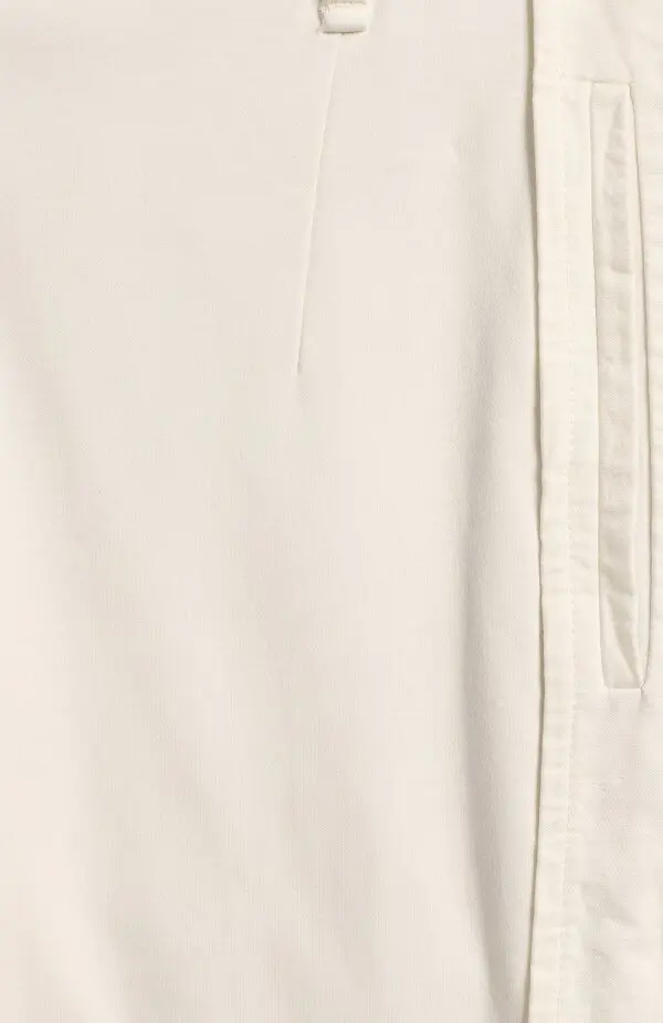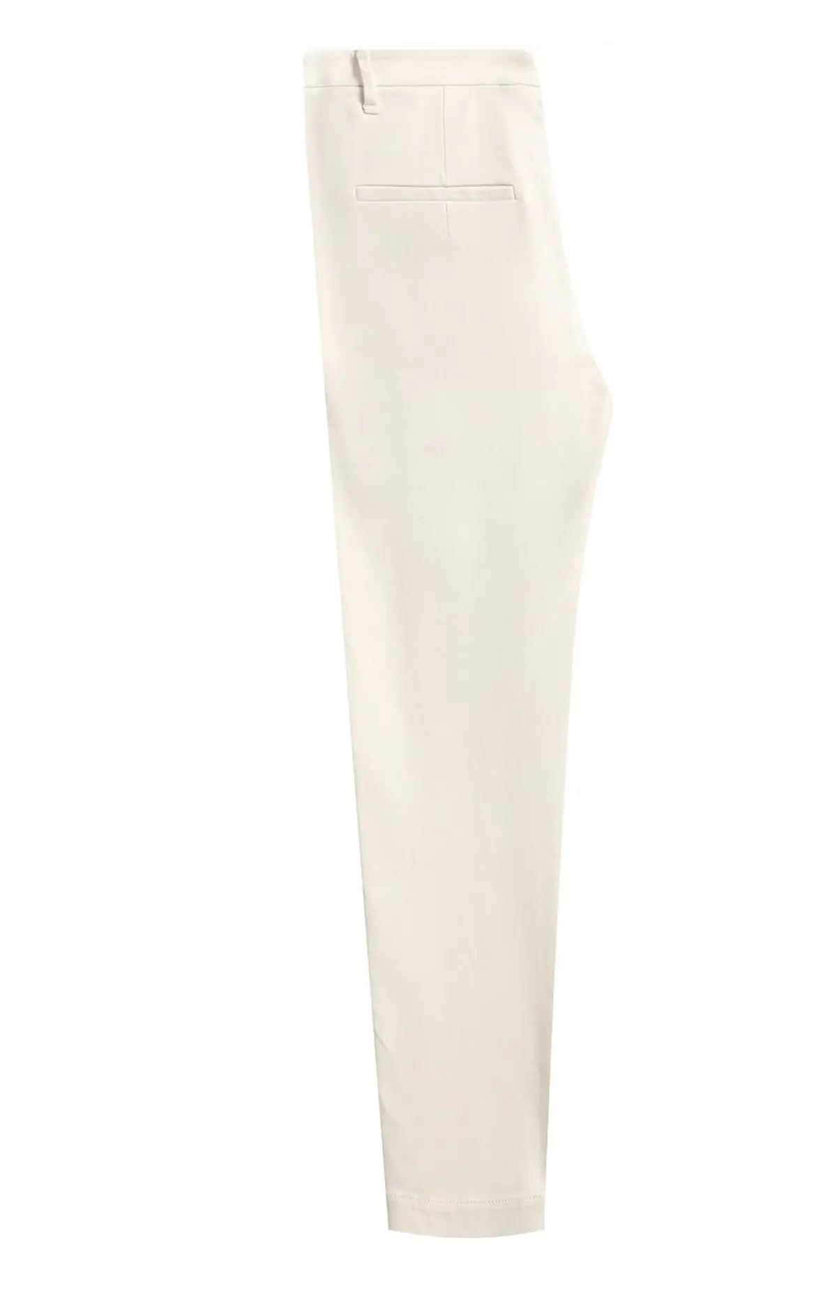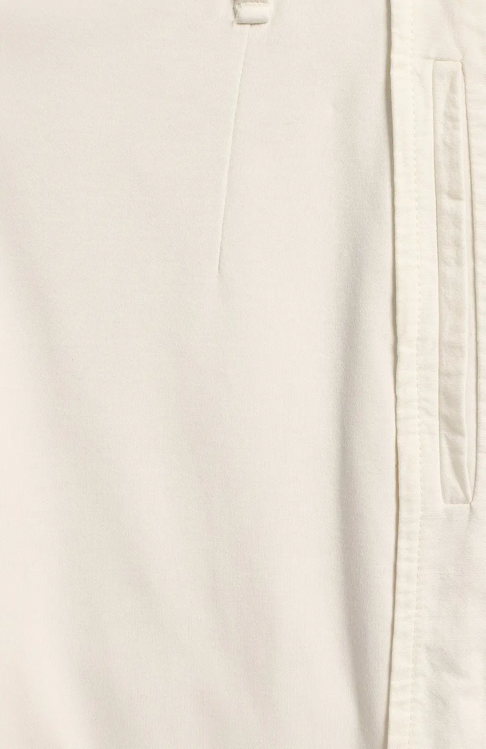Брюки Brunello Cucinelli выполнены из мягкого хлопка с добавлением эластана, что обеспечивает комфорт и идеальную посадку. Модель кремового оттенка с аккуратными стрелками и боковыми лампасами сочетает в себе элегантность и современную расслабленность. Отличный выбор для стильного повседневного или делового образа.