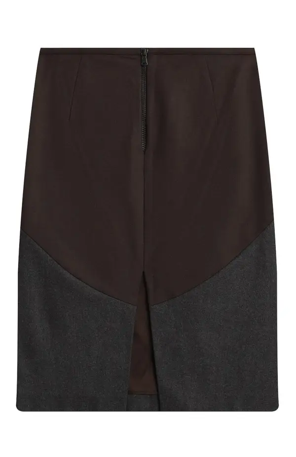 Шерстяная юбка Brunello Cucinelli выполнена из мягкой шерсти с добавлением кашемира. Двухцветное сочетание темно-серого и шоколадного оттенков подчеркивает графичность силуэта и делает модель универсальной для деловых и повседневных образов. Лаконичный дизайн и высокое качество материалов отражают фирменный стиль итальянского бренда.