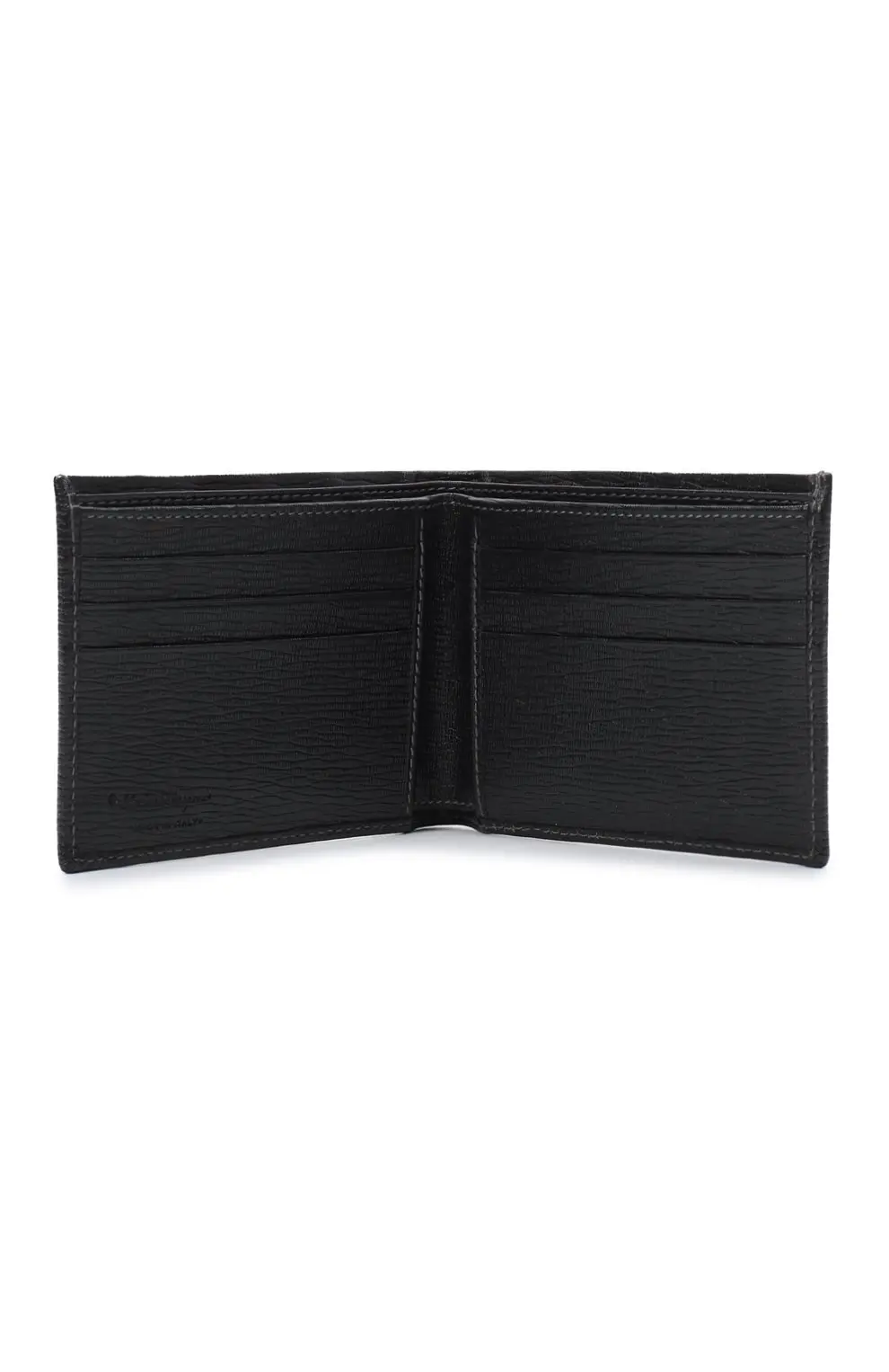 Портмоне Salvatore Ferragamo выполнено из натуральной кожи с выразительной текстурой и деликатным матовым блеском. Лаконичный дизайн подчеркнут металлической пластиной с логотипом бренда и надписью Made in Italy. Внутри — продуманное пространство для купюр, карточек и документов. Элегантный аксессуар сочетает практичность и утончённый итальянский стиль, идеально дополняя образ современного мужчины.