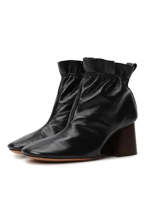 Ботильоны Ballerina Celine выполнены из мягкой чёрной кожи с деликатным блеском, что придаёт модели утончённый и современный вид. Эластичная сборка по верху создаёт эффект лёгкости и комфорта, напоминая изящные балетные акценты. Широкий устойчивый каблук в тёмно-коричневом оттенке добавляет практичности и обеспечивает удобство при носке. За счёт плавных линий и аккуратного силуэта ботильоны выглядят одновременно женственно и универсально, позволяя легко адаптировать их под разные стили.