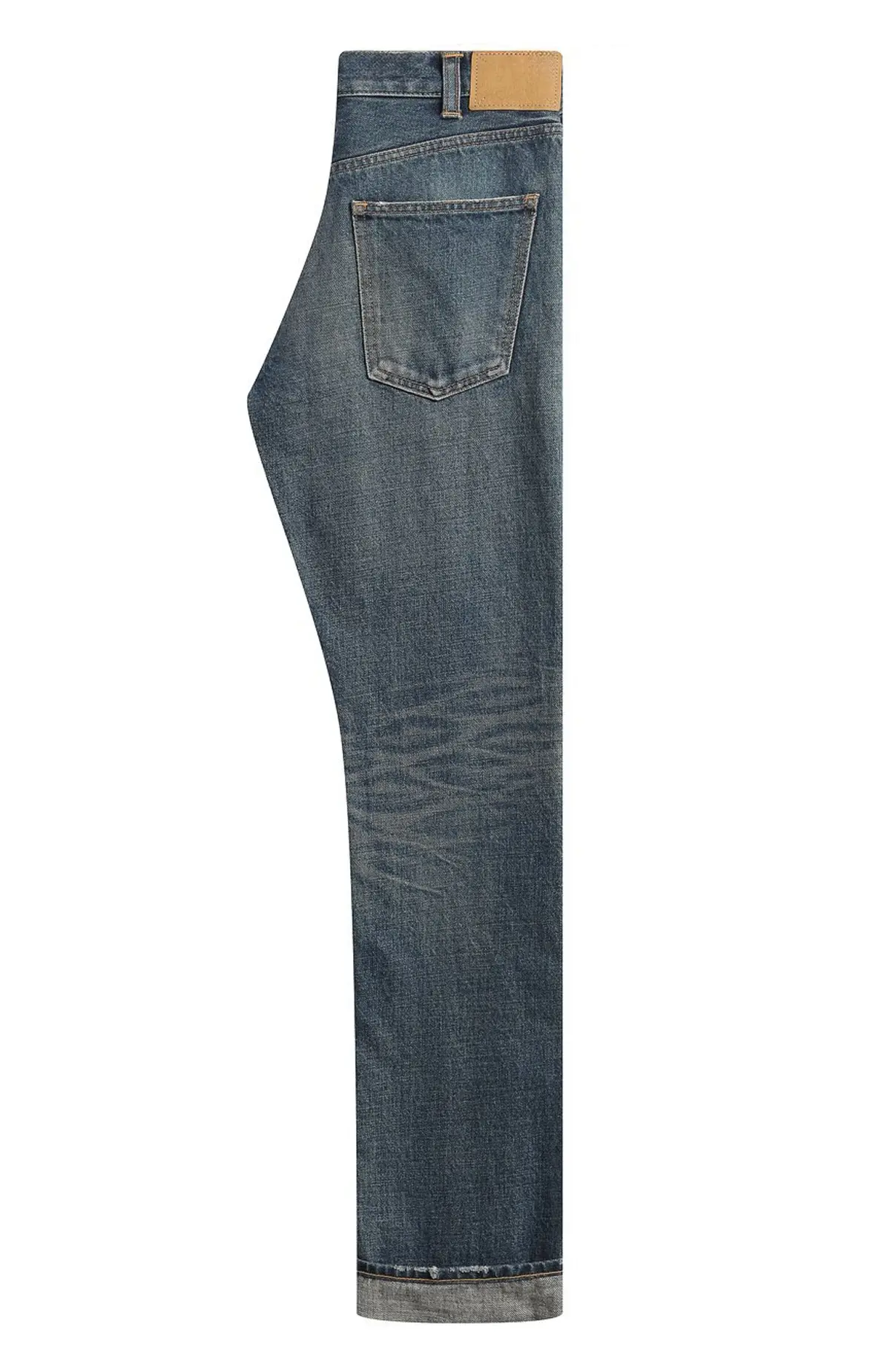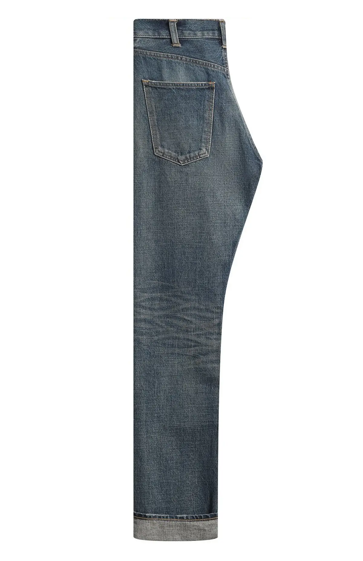 Джинсы Celine изготовили из хлопкового денима голубого оттенка с эффектом потертостей. Модель прямого кроя оформили классическим пятью карманами, застежкой на пуговицу и молнию, а также подворотами на брючинах. Универсальный дизайн подчеркивает непринужденный характер вещи и делает ее удобной основой для повседневных образов.