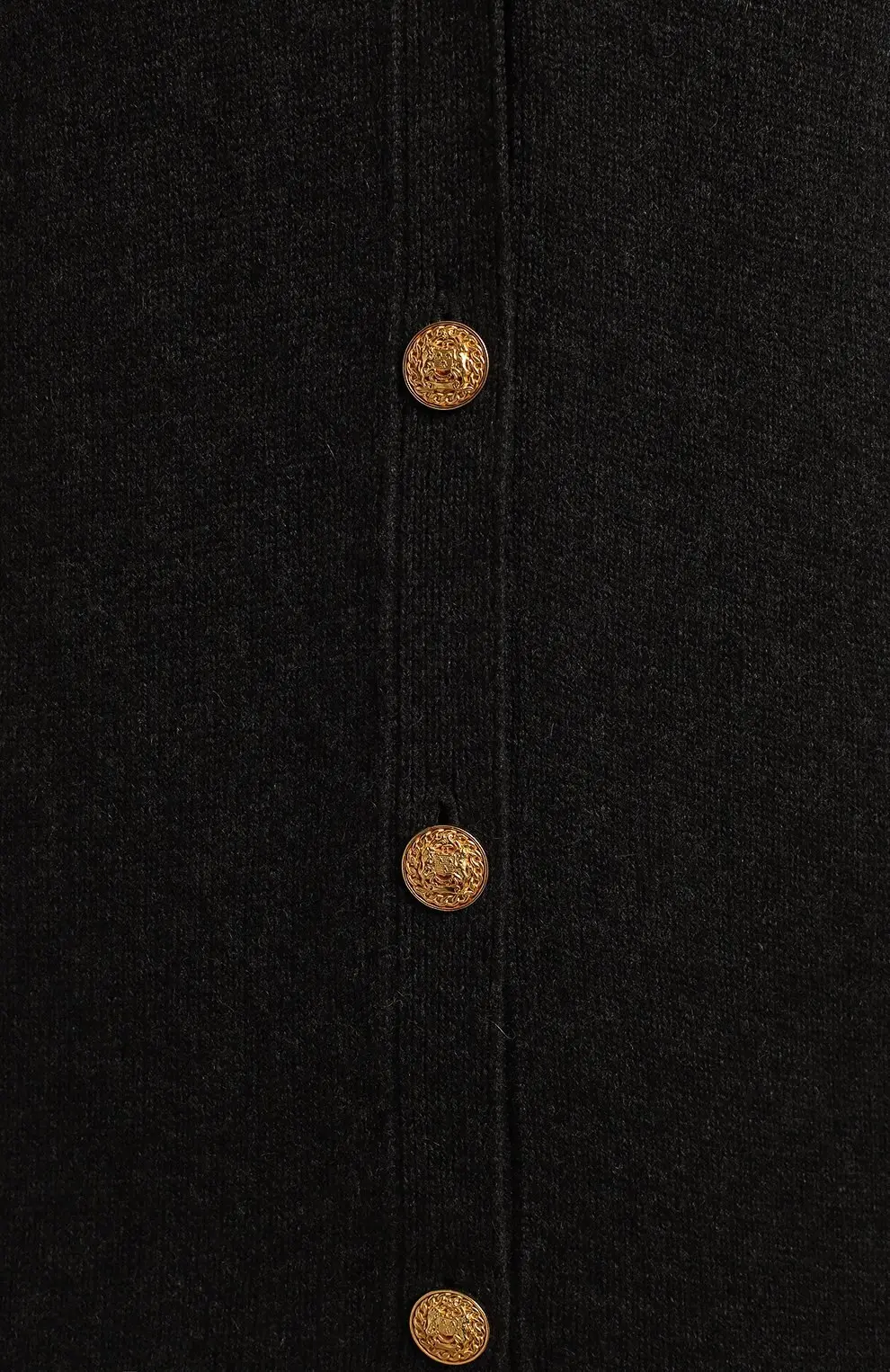 Кашемировый кардиган Celine в насыщенном графитовом оттенке воплощает элегантный минимализм бренда. Модель прямого кроя украшена позолоченными пуговицами с фирменным тиснением и металлическими деталями на карманах. Мягкий кашемир обеспечивает комфорт и роскошное ощущение при носке, делая кардиган универсальным элементом базового гардероба.