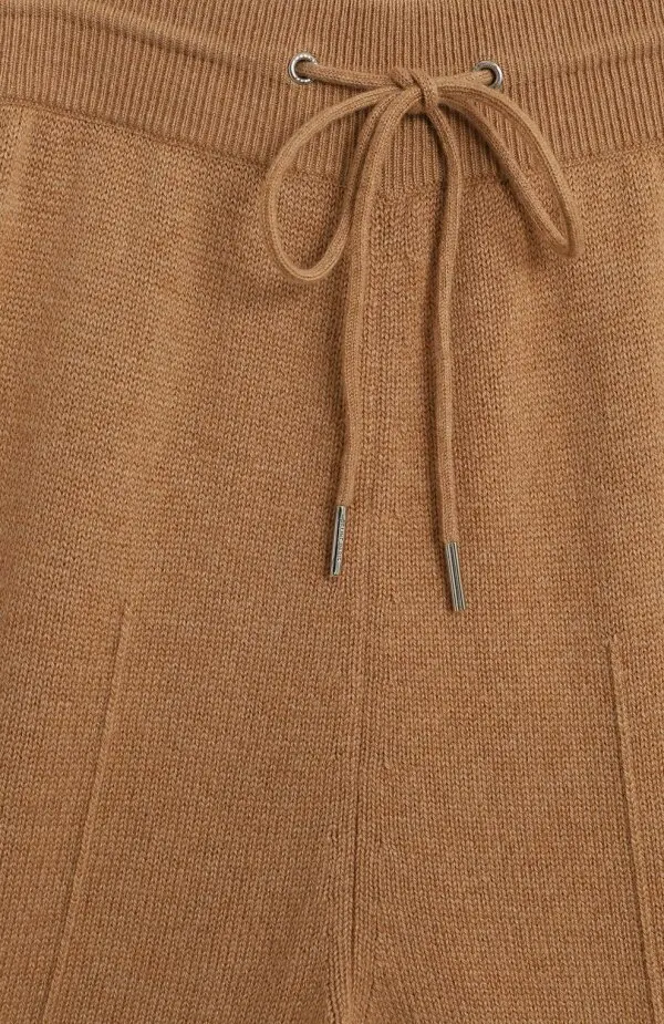 Кашемировые кюлоты Celine выполнены из мягкого кашемира тёплого карамельного оттенка. Модель с комфортной посадкой на талии и эластичным поясом со шнурком обеспечивает лёгкость движений и непринуждённый силуэт. Широкие штанины и минималистичный дизайн делают изделие идеальным выбором для повседневных и расслабленных образов в духе современного люкса.