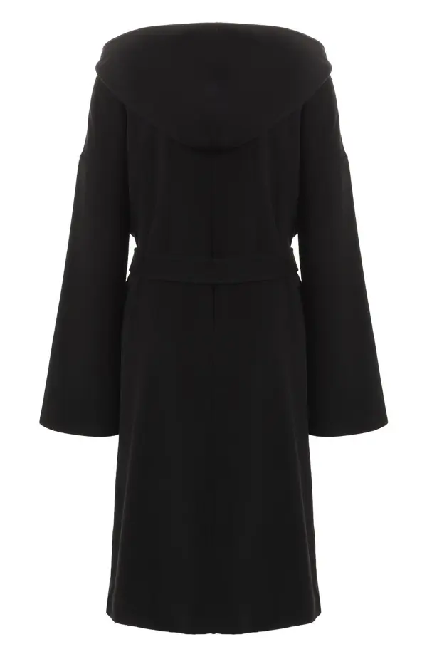 Черное кашемировое пальто Celine выполнено в минималистичном стиле с акцентом на комфорт и универсальность. Свободный силуэт дополнен капюшоном, поясом на талии и застёжкой на пуговицу, что создаёт гармонию практичности и элегантности. Лаконичный дизайн подчеркивает фирменный почерк бренда и делает пальто идеальным выбором для повседневных и вечерних образов.