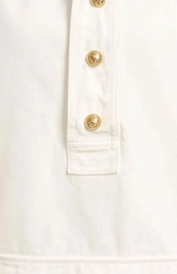Джинсовый анорак Celine в молочном оттенке с капюшоном и накладным карманом. Украшен золотистыми пуговицами, которые придают модели утончённый акцент. Шнурок на кулиске добавляет функциональности и стильной завершённости.