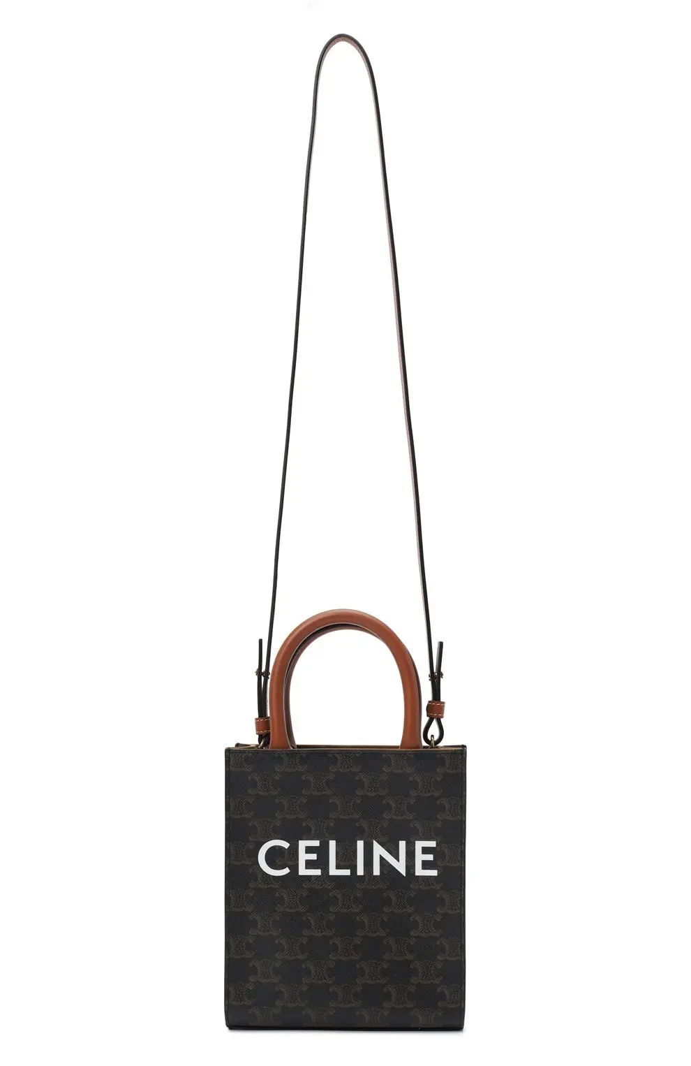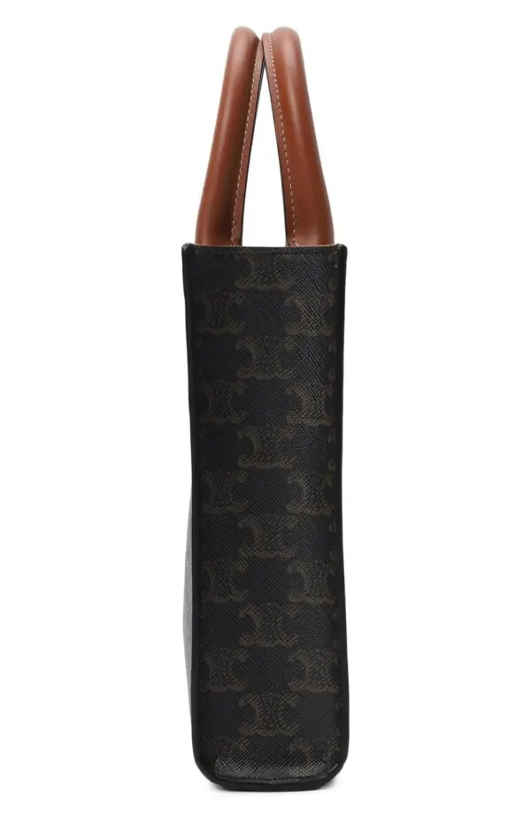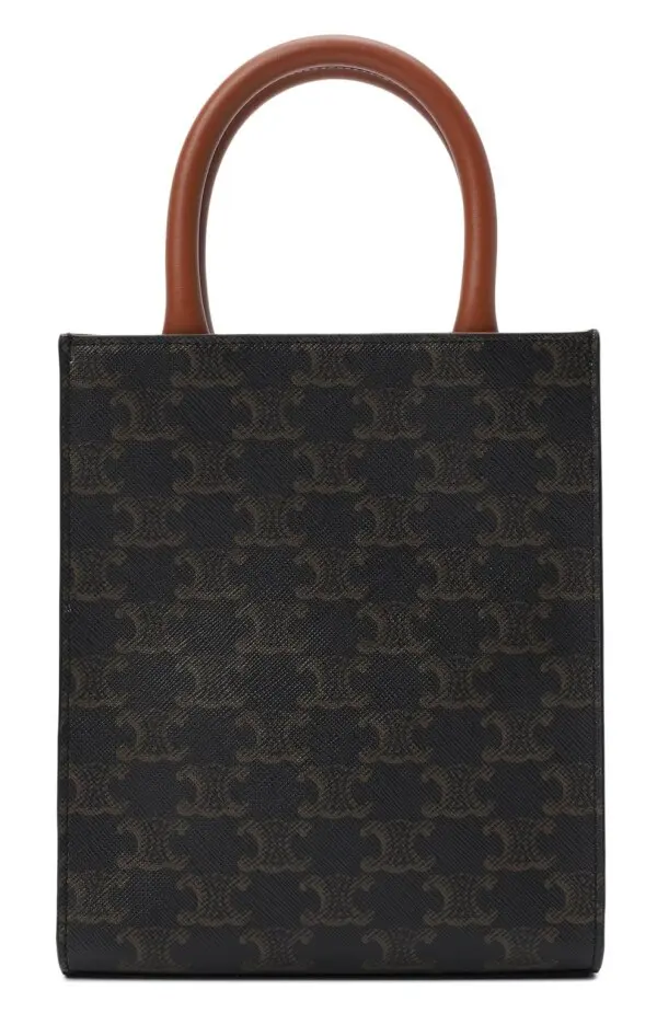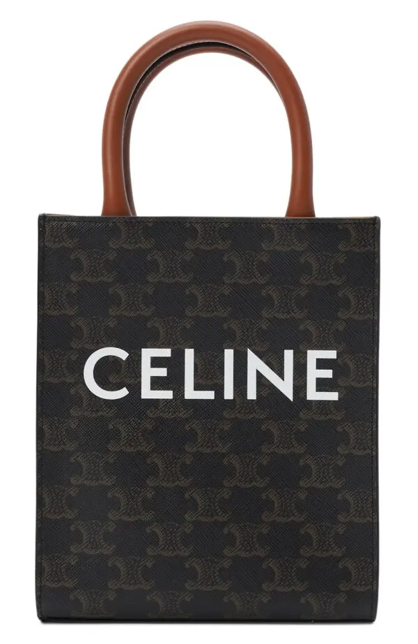 Сумка Cabas Vertical mini от Celine — стильный аксессуар в минималистичном исполнении, сочетающий практичность и элегантность. Модель выполнена из фирменного канваса с культовым узором Triomphe, дополнена гладкими кожаными ручками и крупным контрастным логотипом CELINE на фронтальной панели. Жёсткая форма подчёркивает современный силуэт, а компактный размер делает сумку удобной для повседневного использования.