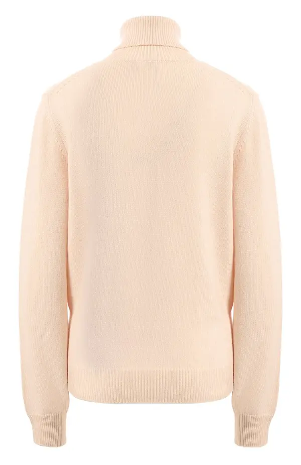 Водолазку Celine связали из мягкого кашемира нежного кремового оттенка. Модель прямого кроя оформили высоким воротником и эластичными планками по краям. Лаконичный дизайн делает изделие универсальной базой для уютных и элегантных повседневных образов.