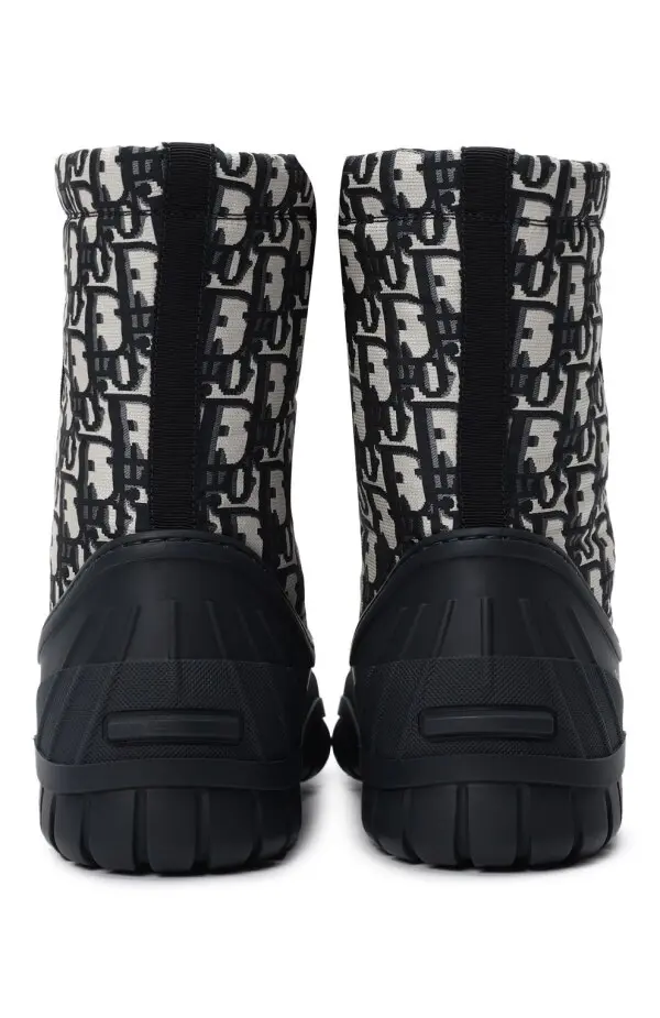 Ботинки Dior D-Venture — это стильное сочетание практичности и фирменного шика. Модель выполнена с прочным резиновым основанием, защищающим от влаги и холода, и верхом из ткани с культовым узором Dior Oblique в синем цвете. Шнуровка и боковая молния обеспечивают удобную посадку, а массивная подошва с глубоким протектором гарантирует надёжное сцепление. Идеальный выбор для активного образа жизни и смелых зимних луков.