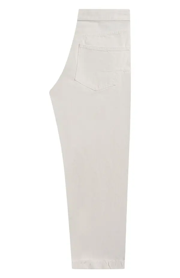 Джинсы Dior белого цвета выполнены из плотного хлопкового денима. Прямой крой и классический дизайн с пятью карманами делают модель универсальной. На подворотах присутствует фирменный текстовый акцент “J’Adior”, придающий изделию современный характер и узнаваемый стиль.