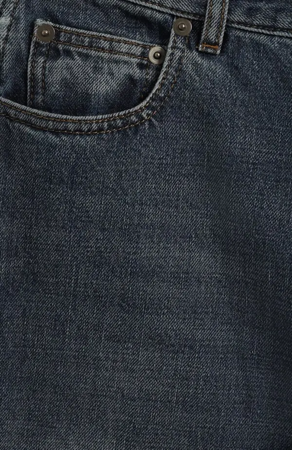 Джинсы Dior выполнены из плотного денима тёмно-синего оттенка с эффектом лёгкой потертости. Классический прямой крой и традиционный дизайн с пятью карманами делают модель универсальной и удобной для повседневного стиля. Аккуратная отделка и качественный деним подчёркивают современный характер изделия.