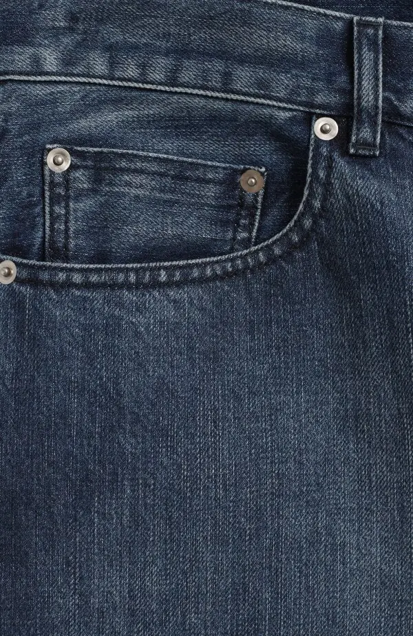 Джинсы Dior из синего денима с эффектом легкой потертости. Модель выполнена в прямом крое с классической пятикарманной конструкцией. Подвороты с необработанным краем и фирменной нашивкой Dior на внутренней стороне добавляют современный акцент. Эти джинсы сочетают в себе стильную универсальность и удобство, подойдут как для повседневных, так и для более элегантных образов.