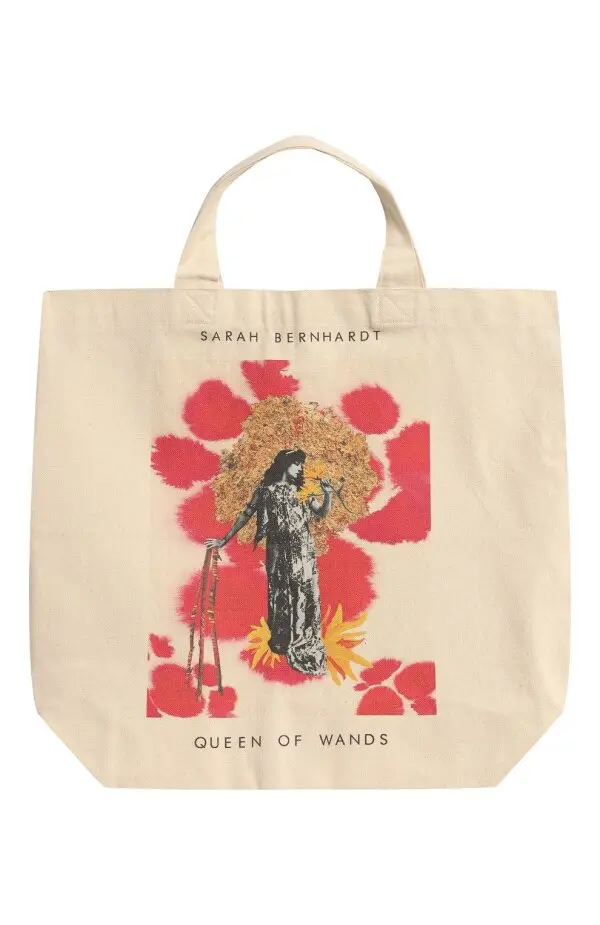 Футболка Dior из хлопка и льна с принтом. Модель выполнена в светлом оттенке, украшена художественным изображением Sarah Bernhardt и надписью Queen of Wands, что придаёт изделию арт-декоративный характер и современный акцент.