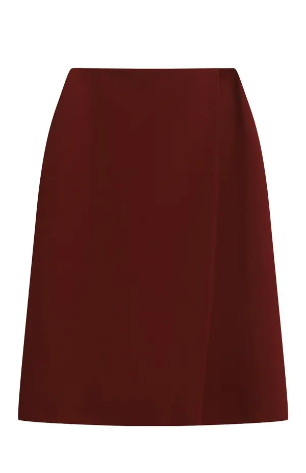 Минималистичная бордовая юбка прямого кроя. Сочетает шерсть и шёлк, благодаря чему ткань держит форму и выглядит элегантно. Лаконичный дизайн подойдёт как для классических, так и для вечерних образов.