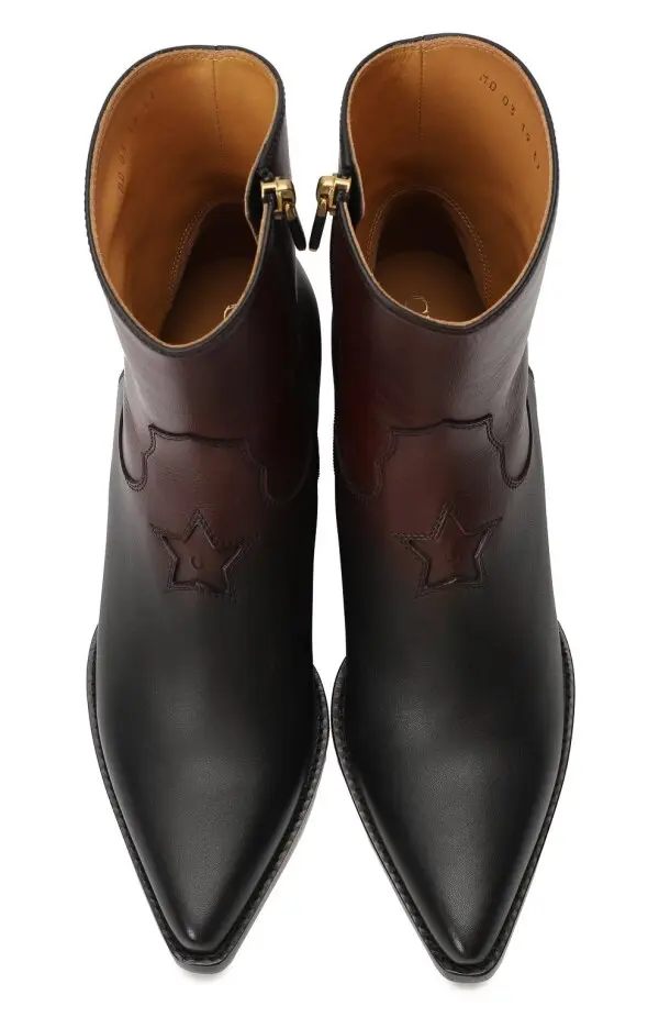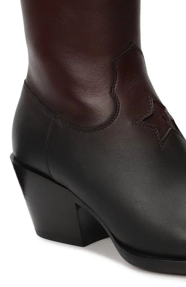 Казаки Dior L.A. от Dior — это стильное воплощение вестерн-эстетики в современном исполнении. Пара выполнена из гладкой телячьей кожи в черно-коричневом сочетании, подчеркивающем геометрию силуэта и характерный для ковбойских сапог высокий голенище с изогнутым краем. Заостренный мыс и устойчивый скошенный каблук усиливают аутентичное звучание модели, а декоративная строчка в виде звезды добавляет фирменный акцент Dior. Эти сапоги станут выразительным элементом гардероба, соединяющим классику Дикого Запада с изысканным французским шиком.
