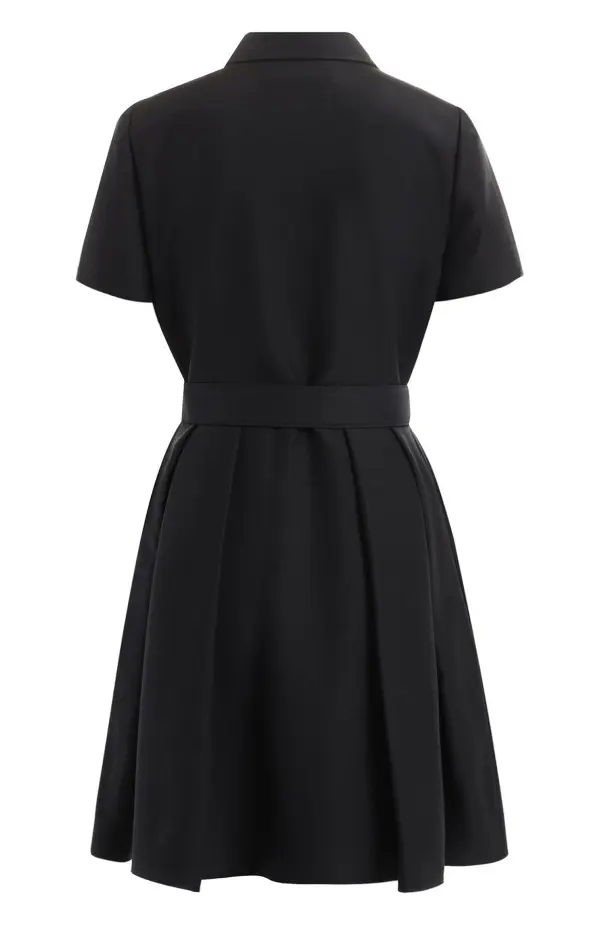 Элегантное платье от Dior, выполненное из благородного микса шерсти и шёлка. Лаконичный чёрный цвет подчеркивает универсальность модели, а мягкий полуприталенный силуэт с лёгким клёшем создаёт женственный и изысканный образ. Перекрестные складки на лифе придают наряду архитектурность, а тонкий пояс акцентирует талию. Идеальный выбор для коктейльных мероприятий, деловых встреч и вечерних выходов, где важны стиль и утончённость.