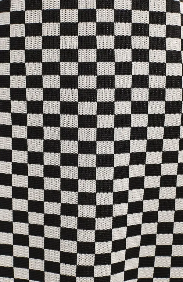 Платье Dior из шелка и хлопка. Модель приталенного кроя с короткими рукавами выполнена в графичном черно-белом клетчатом узоре, украшено фирменной отделкой по боковым швам.