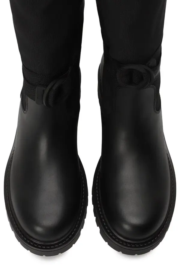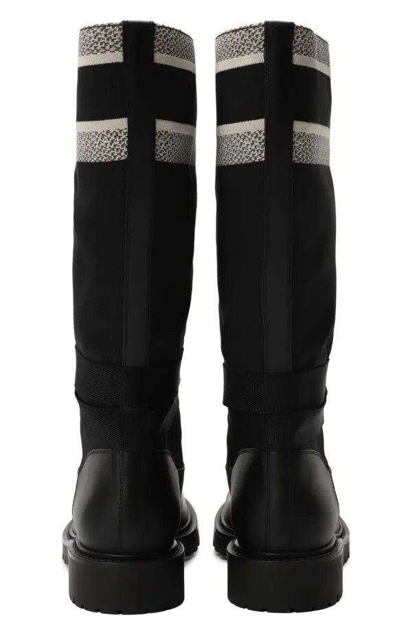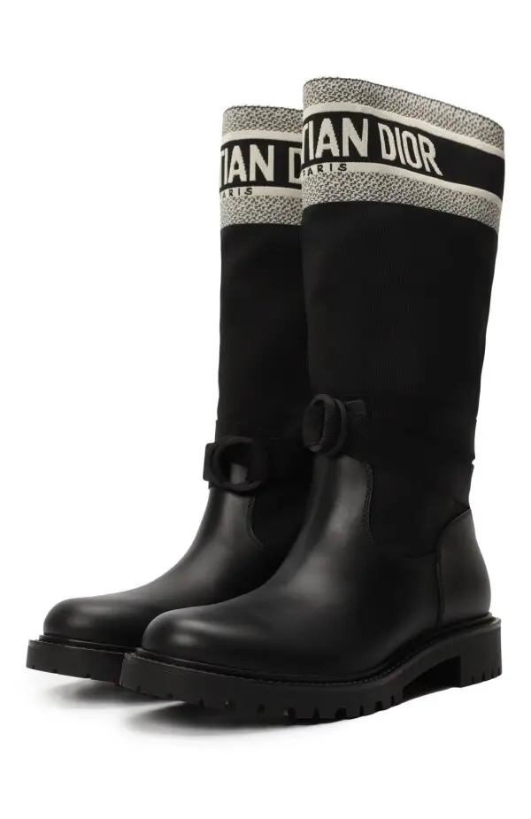 Сапоги D-Major Dior сочетают прочность и современный стиль. Модель выполнена из гладкой чёрной кожи в сочетании с текстилем, украшенным контрастным логотипом Christian Dior Paris в верхней части. Широкие ремешки с пряжками подчёркивают военный характер дизайна, а массивная рифлёная подошва обеспечивает комфорт и надёжное сцепление. Универсальная пара, которая гармонично дополнит как кэжуал, так и более смелые образы.