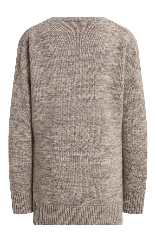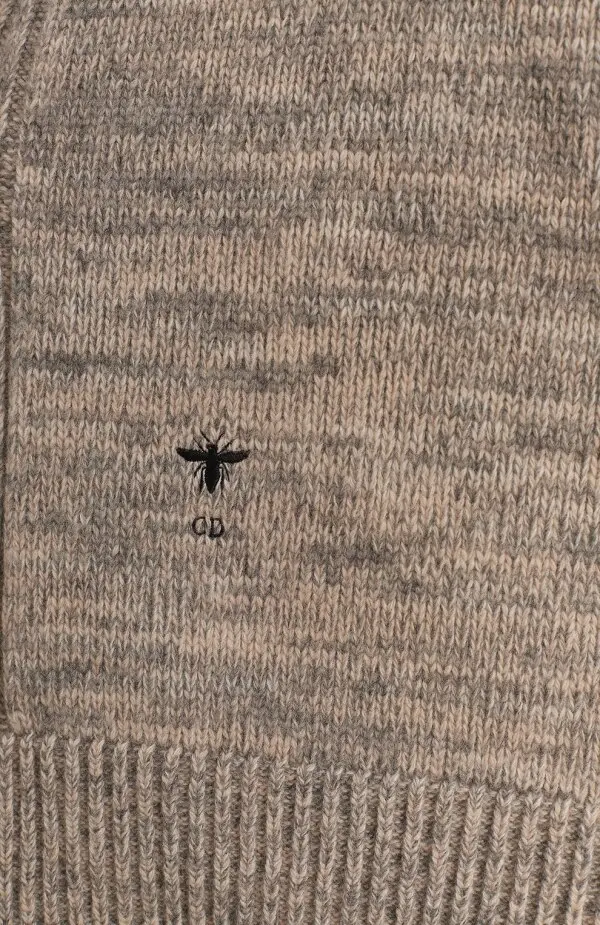 Шерстяной свитер Dior выполнен в свободном силуэте с классическим круглым вырезом. Меланжевая фактура в серо-бежевых тонах придает модели мягкость и уютный характер. Рукава и низ изделия дополнены эластичной резинкой, что подчеркивает практичность и комфорт. Стильный и универсальный вариант для повседневного гардероба.