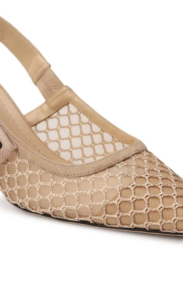 Туфли J’Adior — это воплощение лёгкости и женственности. Модель выполнена в нюдово-бежевом оттенке и дополнена сетчатым верхом с сотами, создающим воздушный эффект. Удобный невысокий каблук «kitten heel» обеспечивает комфорт, а культовый текстильный ремешок с вышитым логотипом J’Adior добавляет знаковый штрих. Эти туфли удачно сочетают в себе современный шик и ДНК модного дома Dior.
