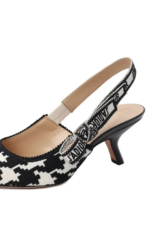 Туфли J’Adior от Dior в чёрно-белом узоре «гусиная лапка» сочетают элегантность и современный характер. Заострённый мысок придаёт модели изысканный силуэт, а фирменный ремешок с вышивкой «J’Adior» и бантом подчёркивает знаковый стиль Дома. Средний изогнутый каблук добавляет комфорта, делая пару идеальной как для повседневных образов, так и для особых случаев.