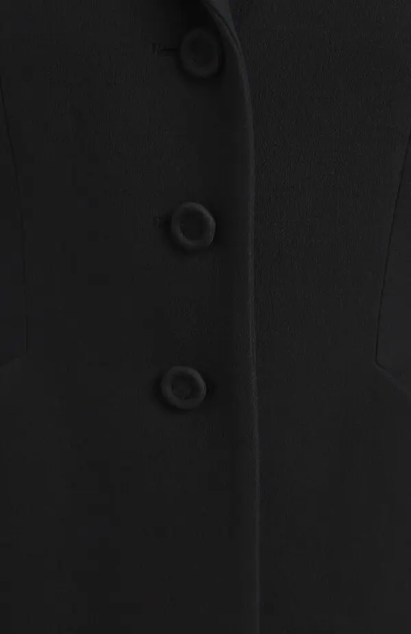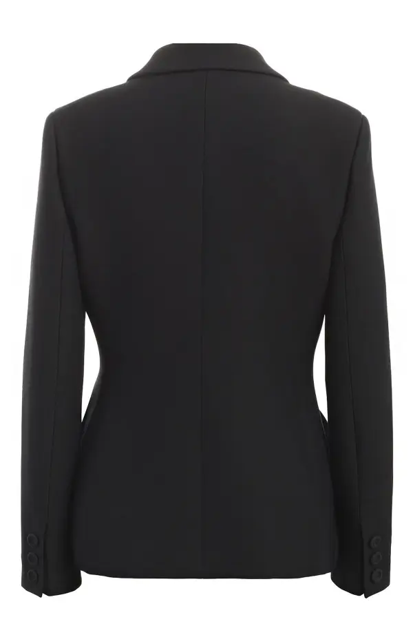 Шерстяной жакет от Dior выполнен в насыщенном бордовом оттенке и отличается элегантным приталенным силуэтом, подчеркивающим фигуру. Модель с классическим отложным воротником и застежкой на три пуговицы дополнена фигурными клапанами карманов, придающими образу утонченную архитектурность. Плотная фактура шерсти и безупречный крой делают жакет стильным решением как для делового гардероба, так и для более изысканных повседневных образов.