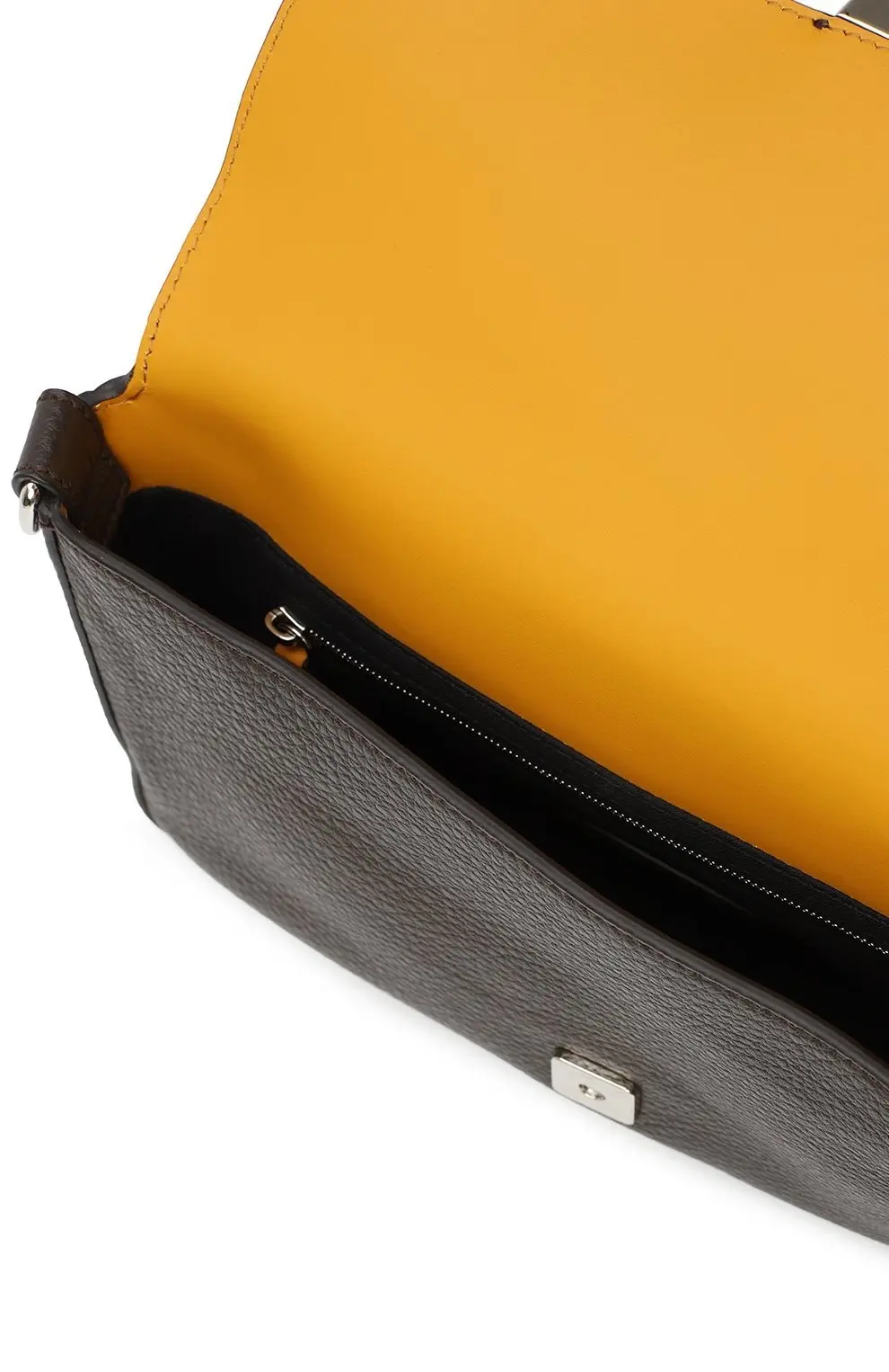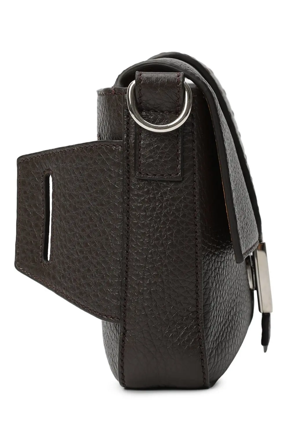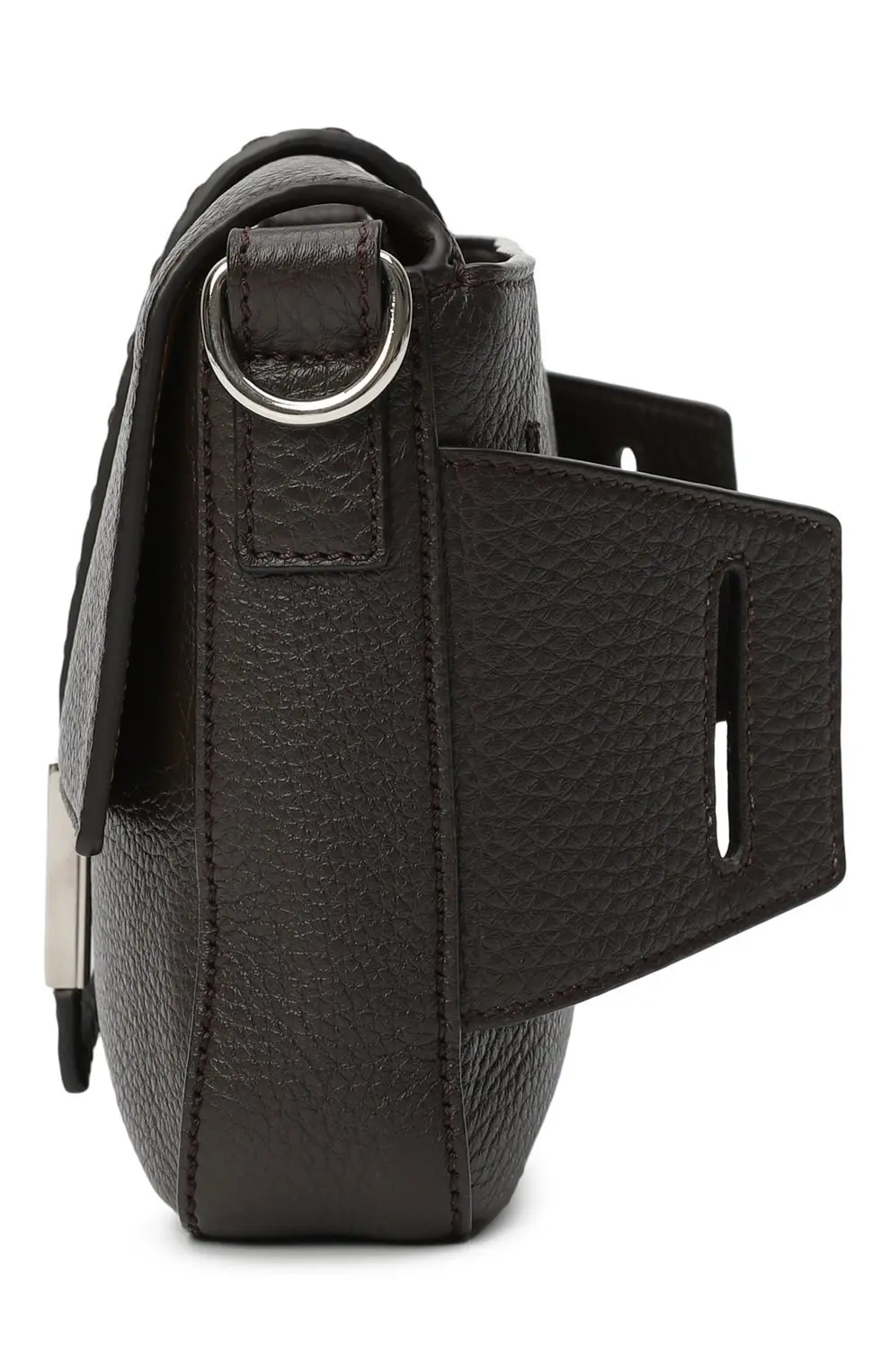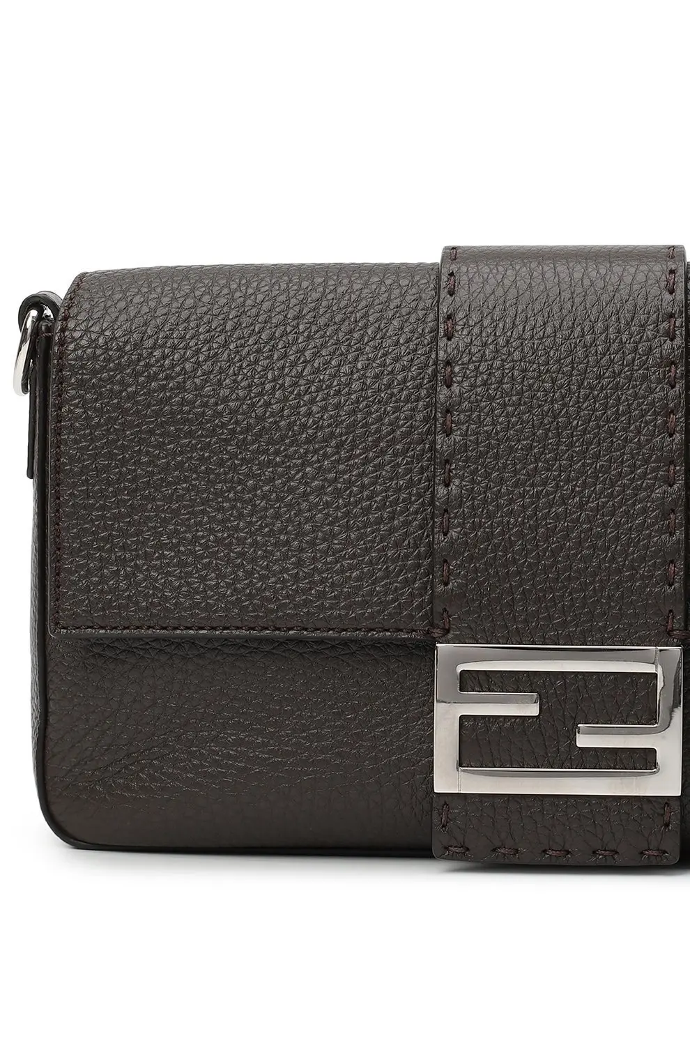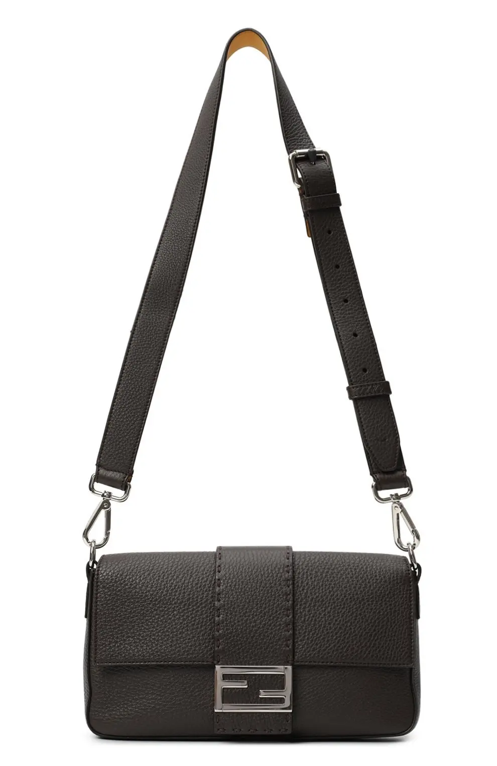 Сумка Baguette от Fendi создана из мягкой зернистой кожи и украшена фирменной пряжкой FF. Лаконичный силуэт и регулируемый плечевой ремень делают модель универсальной для повседневных образов.