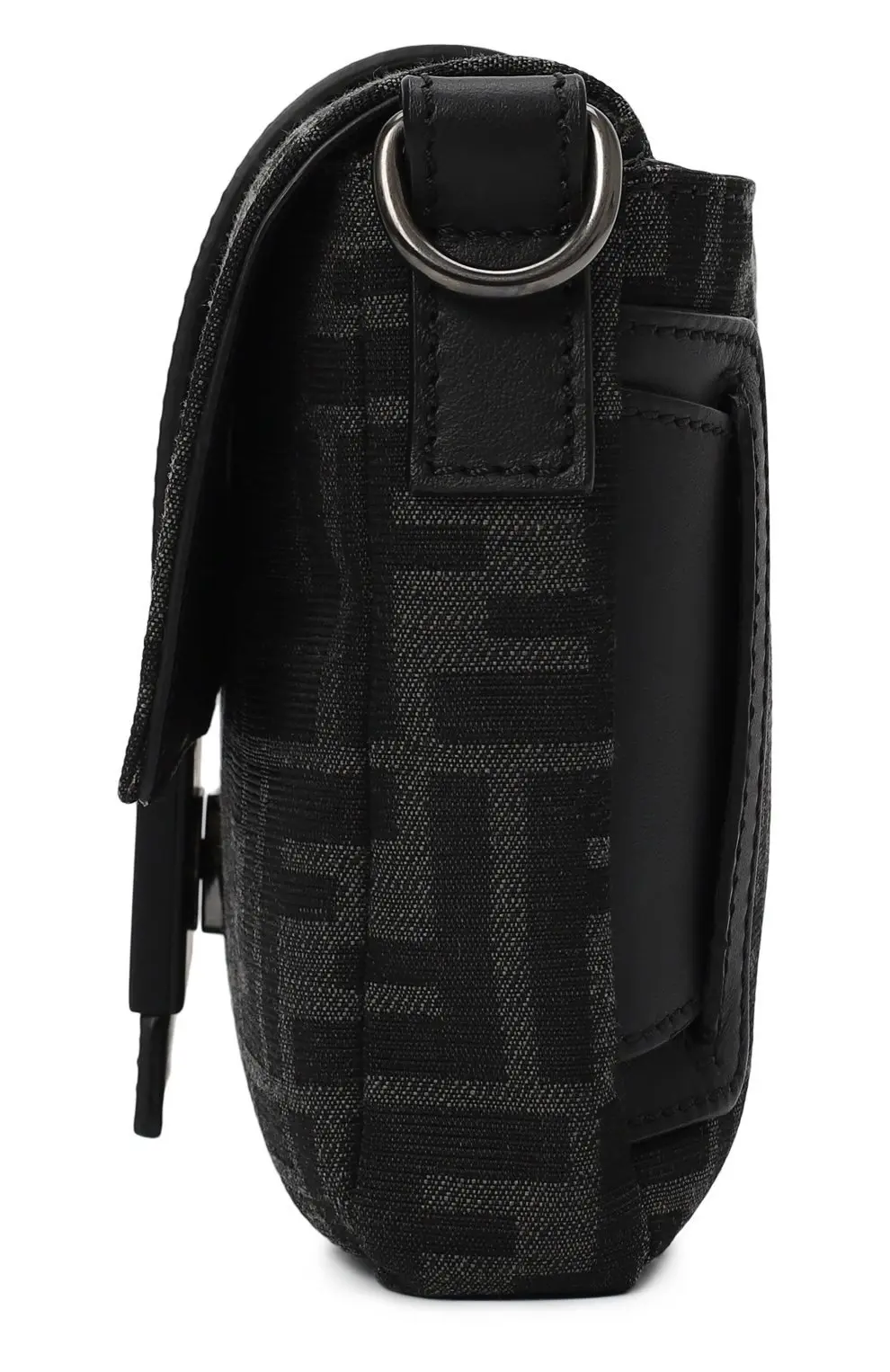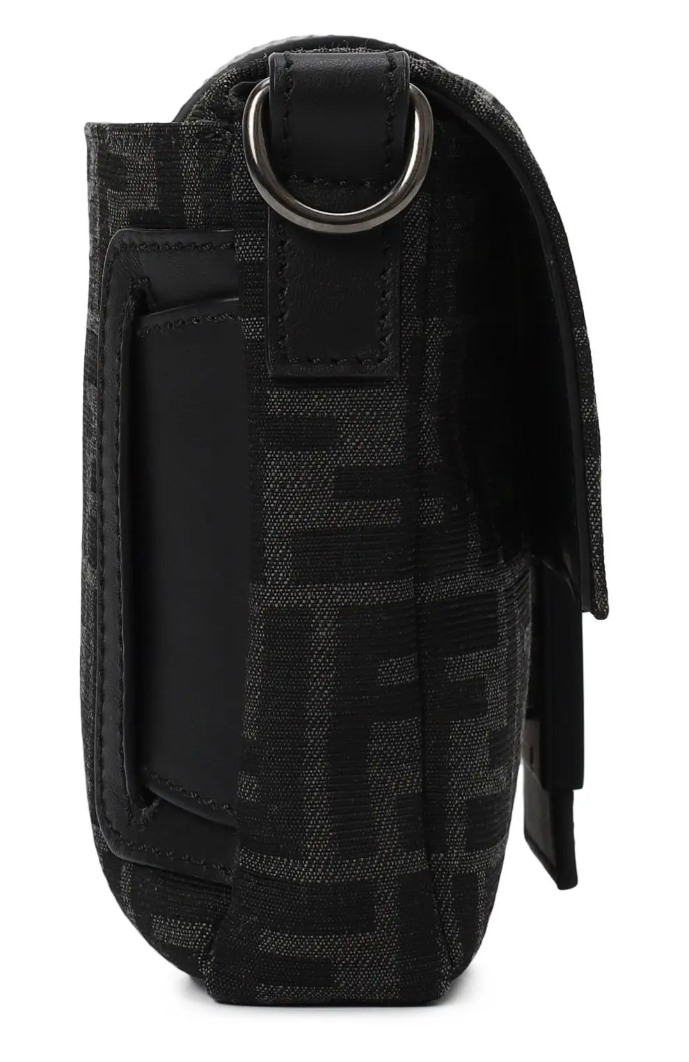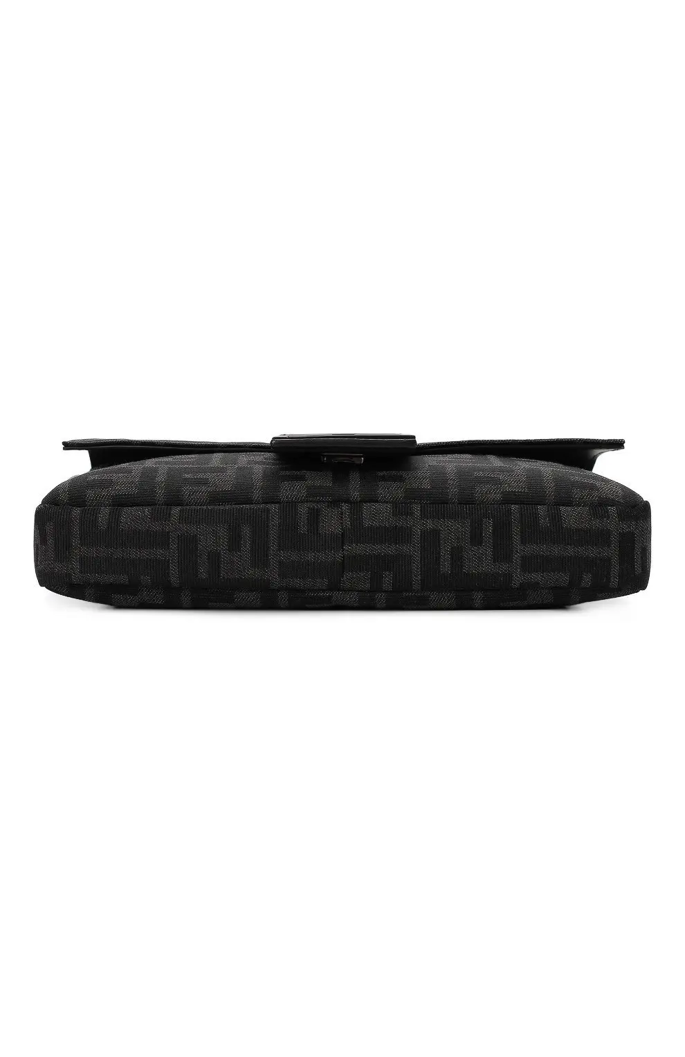 Мужская сумка Baguette от Fendi выполнена из прочного текстиля с фирменным узором FF. Модель прямоугольной формы с откидным клапаном дополнена кожаной вставкой и магнитной пряжкой в тон. Аксессуар оснащён основным отделением и внутренним карманом на молнии, что сочетает функциональность и современный минималистичный стиль.