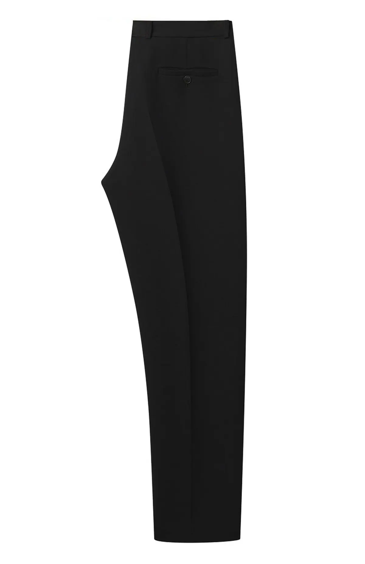 Классические прямые брюки от Dior выполнены из высококачественной тонкой шерсти. Черный цвет придаёт образу строгость и универсальность, а заострённые стрелки спереди визуально вытягивают силуэт. Модель дополнена шлёвками для ремня, боковыми и задними карманами, что делает её одновременно практичной и элегантной. Отличный выбор как для деловых встреч, так и для повседневного стиля в формате smart casual.