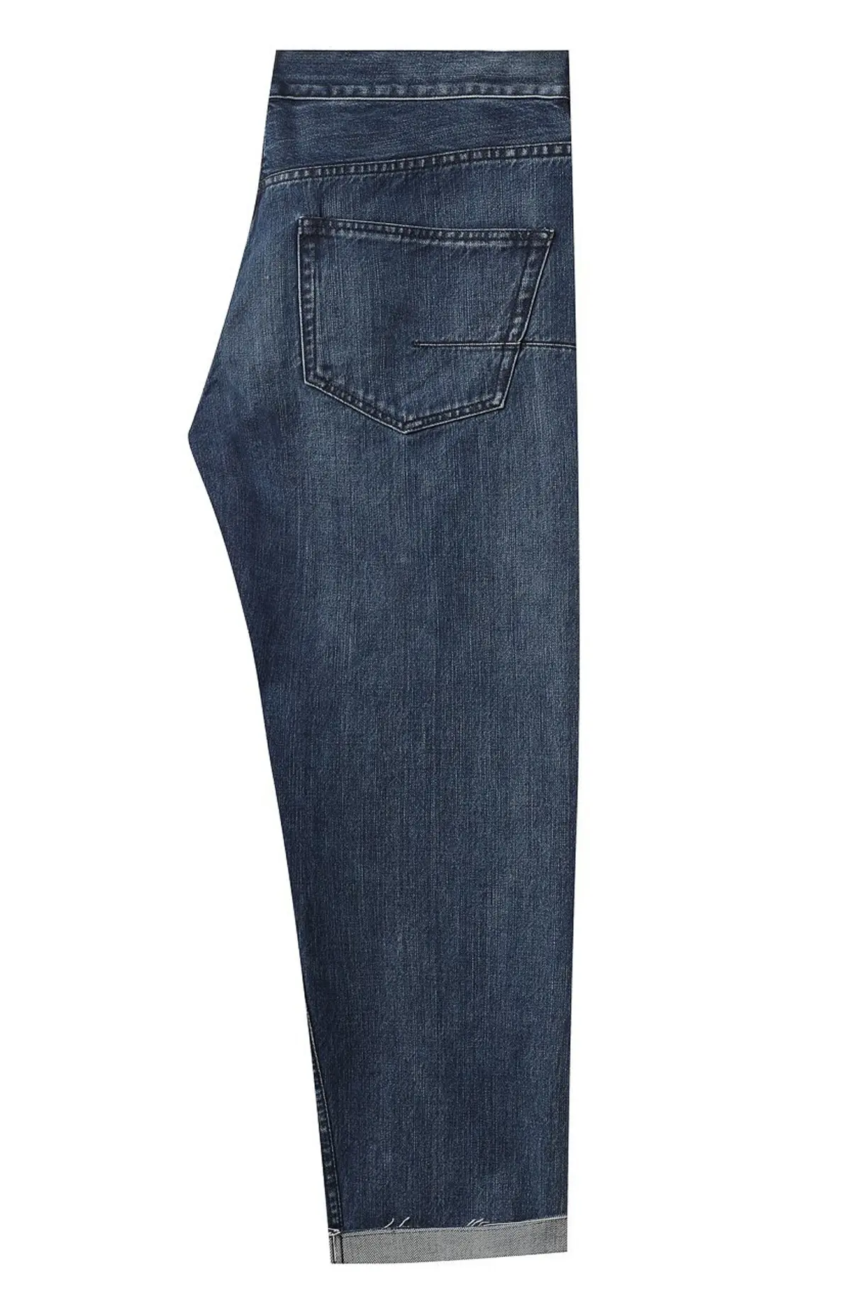 Джинсы Dior из синего денима с эффектом легкой потертости. Модель выполнена в прямом крое с классической пятикарманной конструкцией. Подвороты с необработанным краем и фирменной нашивкой Dior на внутренней стороне добавляют современный акцент. Эти джинсы сочетают в себе стильную универсальность и удобство, подойдут как для повседневных, так и для более элегантных образов.