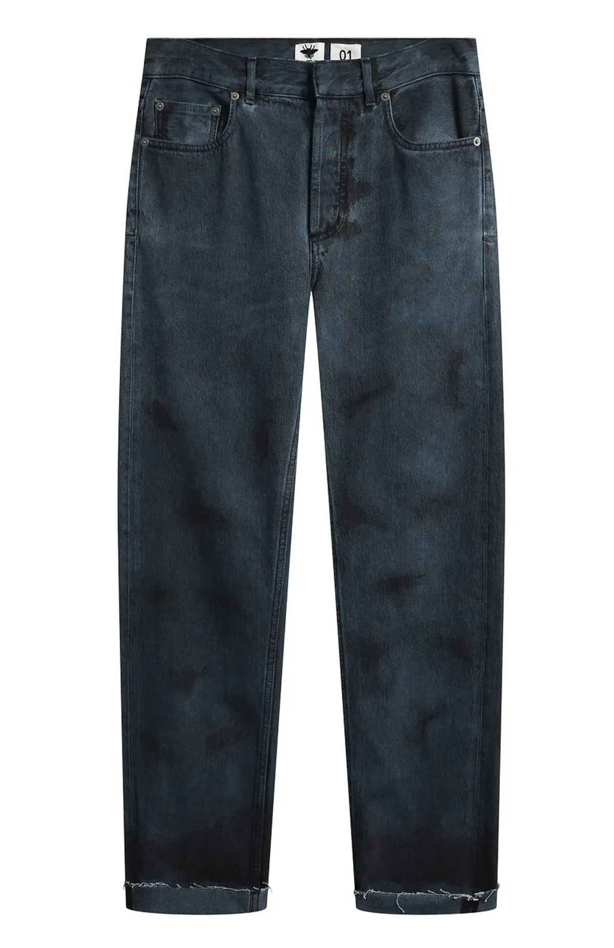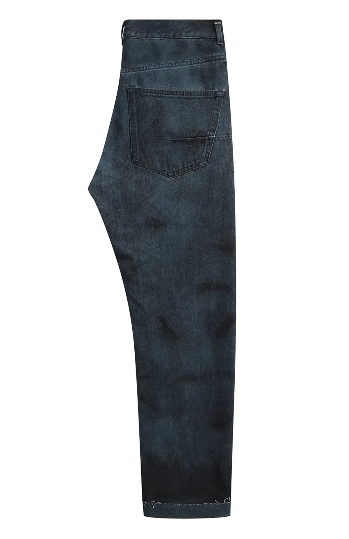 Эффектные джинсы Dior из плотного хлопкового денима с графичной тёмной варкой. Модель прямого кроя дополнена необработанным краем брючин и аккуратными потертостями, создающими выразительный «артизанальный» эффект. Классическая посадка и пятикарманная конструкция подчеркивают универсальность изделия, сохраняя ДНК Дома.