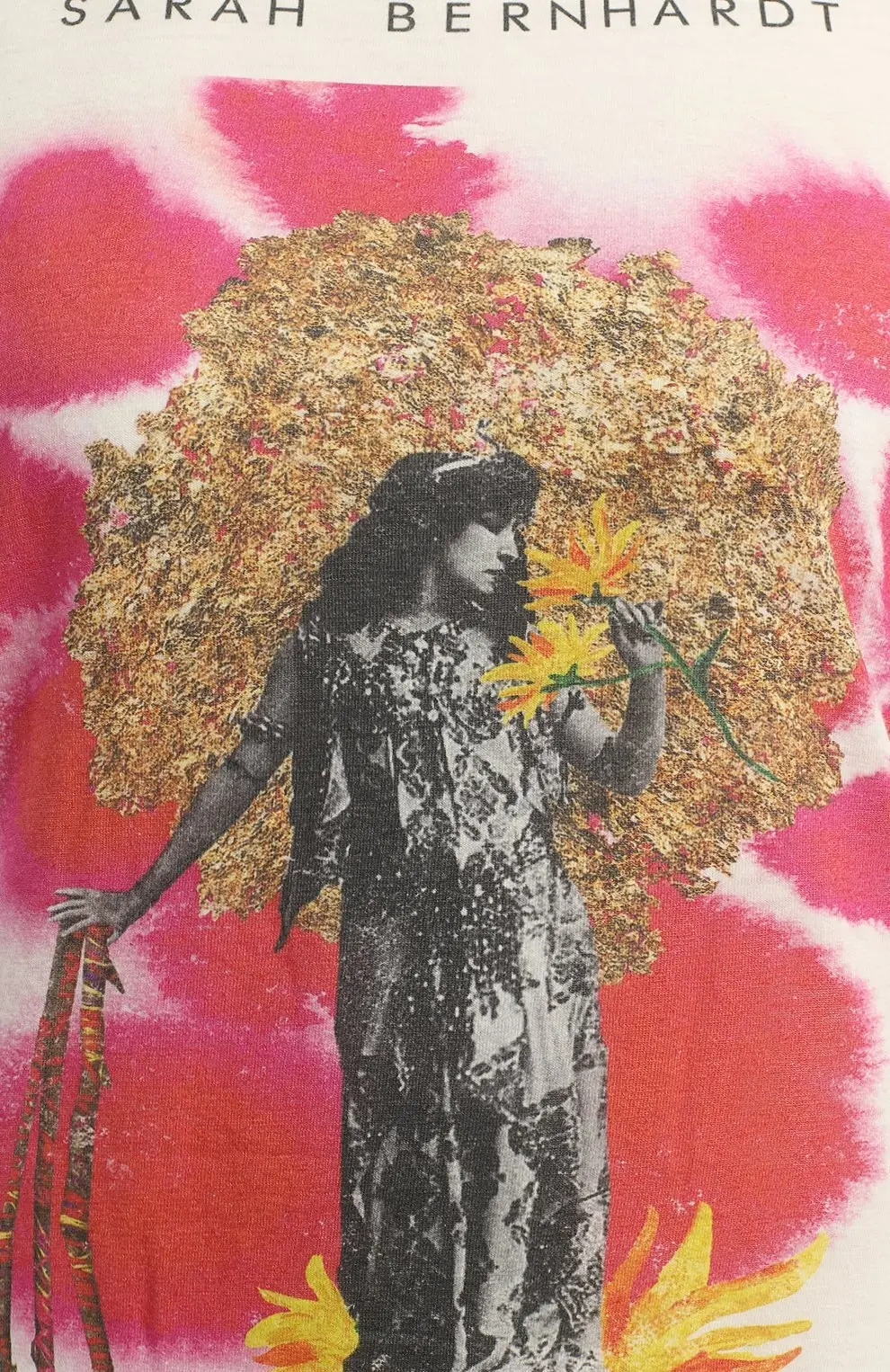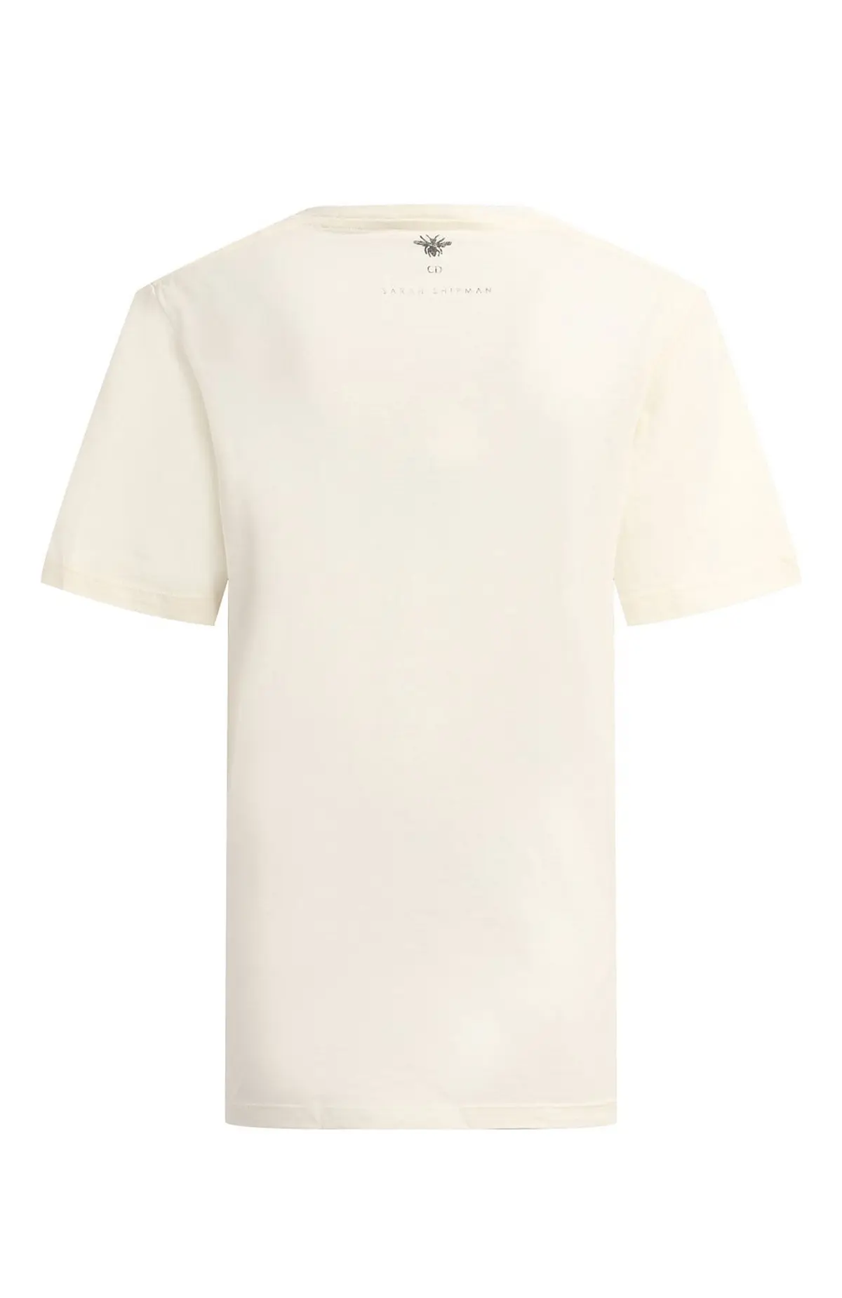 Футболка Dior из хлопка и льна с принтом. Модель выполнена в светлом оттенке, украшена художественным изображением Sarah Bernhardt и надписью Queen of Wands, что придаёт изделию арт-декоративный характер и современный акцент.